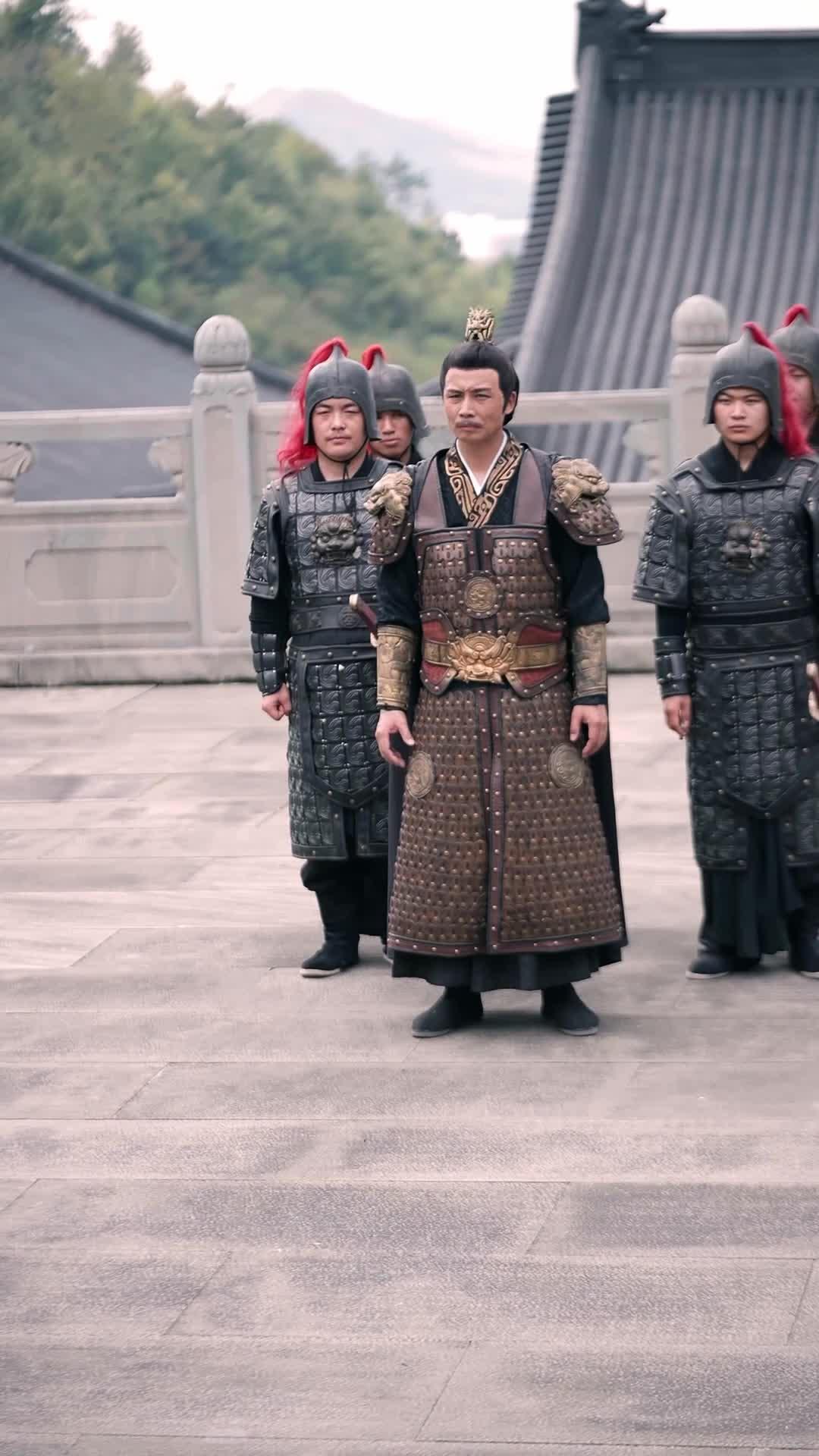 Tian Yong stands at the center, not because he chose to, but because the weight of expectation has pinned him there like a specimen on display. His armor—bronze-scaled, lion-headed shoulder guards gleaming dully under overcast light—is ornate, yes, but it doesn’t fit right. The belt buckle, carved with a coiled dragon, sits too high; his posture is rigid, not proud. He keeps his hands clasped behind his back, fingers twitching just enough to betray the storm beneath. When the man in pale robes—let’s call him Li Wei, though no name is spoken aloud—steps forward with that theatrical flourish, pointing, gasping, gesticulating like a street performer trying to distract from a missing coin, Tian Yong doesn’t flinch. He watches. Not with contempt, not with patience—but with the weary focus of a man who’s seen this script before, and knows the final act always ends in blood.