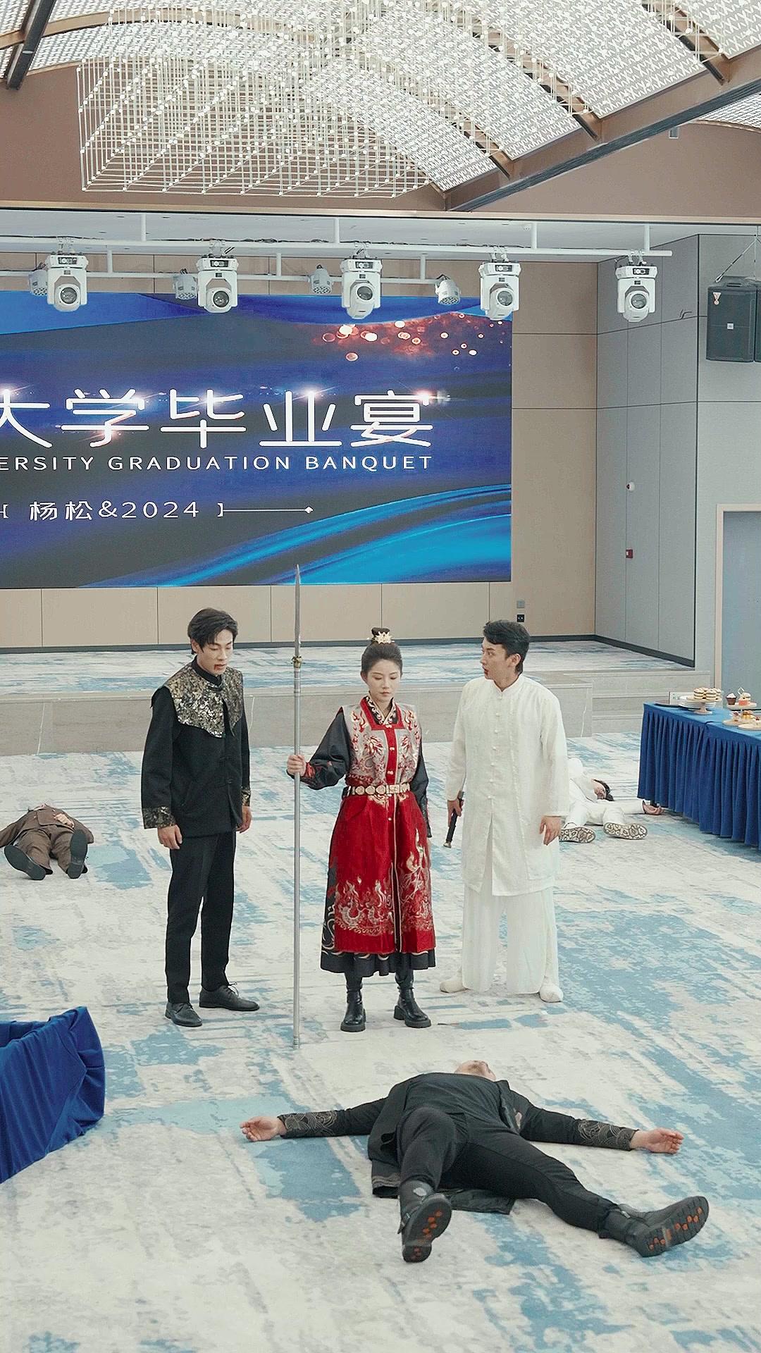 The grand hall of the University Graduation Banquet—its banners still fluttering with digital elegance, its chandeliers casting a cold, crystalline glow—should have been filled with laughter, clinking glasses, and the soft murmur of futures being toasted. Instead, it’s a stage frozen mid-tragedy, where three figures stand like statues carved from tension, and one lies sprawled across the blue-and-white carpet like a discarded prop. This isn’t a misfire of catering logistics or an overzealous speech gone awry. This is *Here Comes the Marshal Ezra*, and the banquet has become a battlefield dressed in silk and sorrow.
