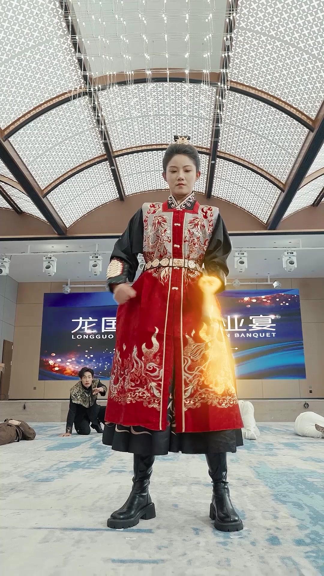 And Lin Xiao? Oh, she’s the quiet storm. While Chen Wei reels, she doesn’t gloat. She doesn’t smirk. She simply lowers the staff, its glow fading to dull metal, and looks at him—not with hatred, but with something heavier: disappointment. As if he should’ve known better. As if he *did* know better, and chose otherwise. Her costume tells the story before she moves: red for loyalty, silver for purity, dragons coiled across her torso like ancient oaths. The flames embroidered along the hem? Not decoration. They’re warnings. Every time she shifts her weight, the fabric rustles like dry leaves before a wildfire. When she turns to face the audience—yes, the *audience*, because let’s be honest, this isn’t just happening *in* the banquet hall; it’s happening *for* the people still standing, mouths agape, phones trembling in their hands—that’s when the real tension ignites. Two men in suits—Zhang Hao and Wang Jun—freeze mid-step, eyes bulging, ties askew. One whispers something to the other; the other just stares, pupils dilated, as if witnessing a myth step out of a scroll and into his LinkedIn feed.