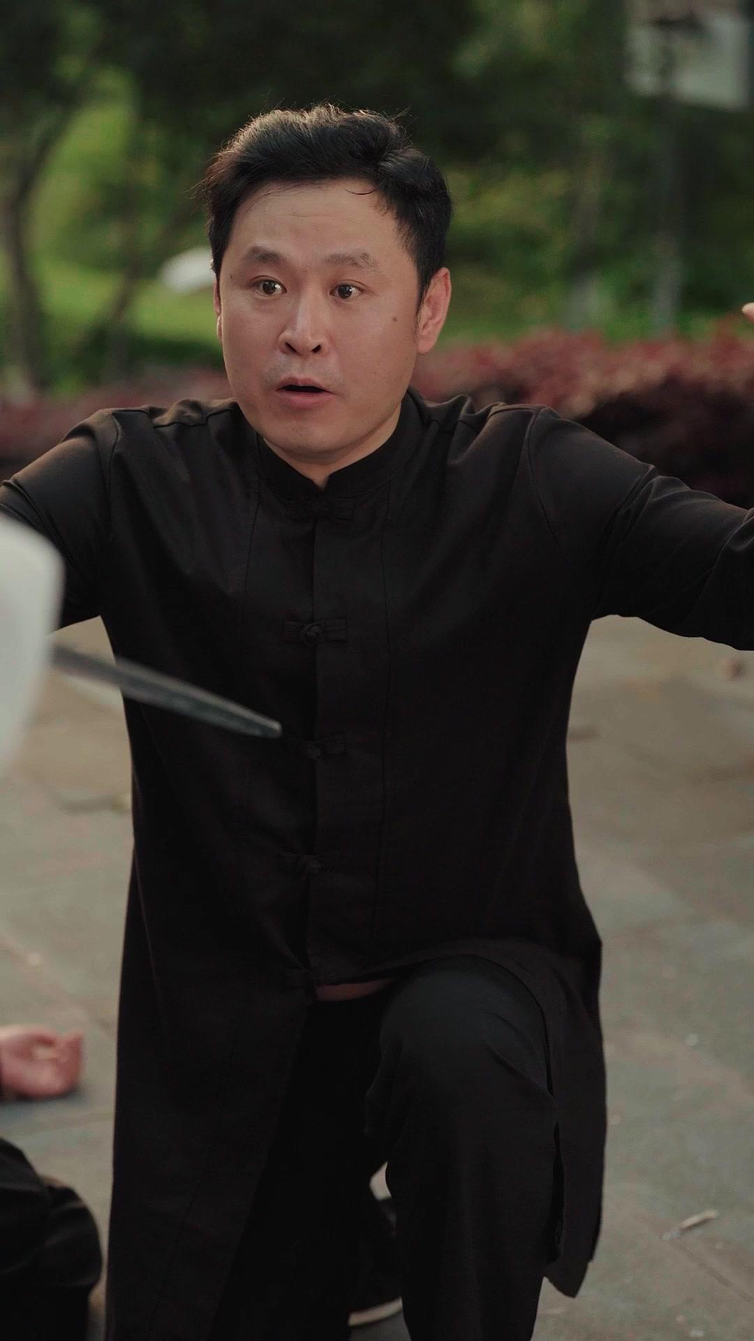 Let’s talk about that moment—when the blade hovers, trembling just above the kneeling man’s collarbone, and time itself seems to hold its breath. In *Here Comes the Marshal Ezra*, this isn’t just a standoff; it’s a psychological autopsy performed in broad daylight. The man in black—let’s call him Li Wei for now, though the script never names him outright—kneels with his arms outstretched like a martyr accepting his fate, yet his eyes dart sideways, calculating angles, escape routes, even the weight of the sword’s tip. His mouth is open, not in surrender, but in mid-speech, as if he’s still trying to bargain with reality itself. Behind him, two figures stand like statues: one in ornate black-and-gold traditional attire—Zhou Yan, the quiet storm—and the other, a woman in striped linen and jeans, Xiao Lin, whose posture says she’s seen too much to be shocked, but not enough to look away. She doesn’t flinch when the sword shifts. She doesn’t blink when Zhou Yan lifts a finger—not to command, but to *pause*. That gesture alone tells us everything: power here isn’t shouted; it’s whispered between breaths.