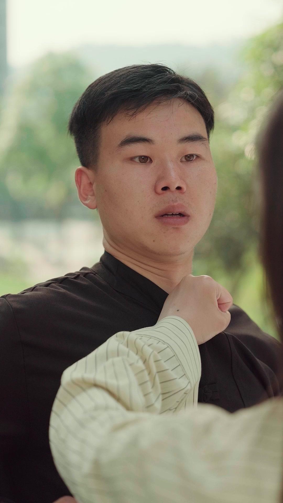 Let’s talk about the jaw touch. Not once. Not twice. *Three times*—and each instance is a seismic shift in the emotional architecture of *Here Comes the Marshal Ezra*. In film language, a repeated gesture is never accidental. It’s a motif. A thesis. And in this case, it’s the key to unlocking what this entire sequence is really about: the fragility of control. Li Wei—the young man in the plain black tunic—is our emotional conduit. His face is open, expressive, almost too much so for a world that rewards stoicism. When the woman grabs his wrist in the first frame, his eyes widen, pupils dilating—not with fear, but with surprise at his own impulsiveness. He *wanted* to act. He *thought* he knew what to do. And then she stopped him. Not with force, but with presence. That’s the first jaw touch: seconds later, he brings his hand up, fingers pressing into his cheekbone, thumb grazing his lower lip. It’s not pain. It’s self-correction. He’s literally grounding himself, reminding his nervous system: *You are still here. You are still in charge of your body.*