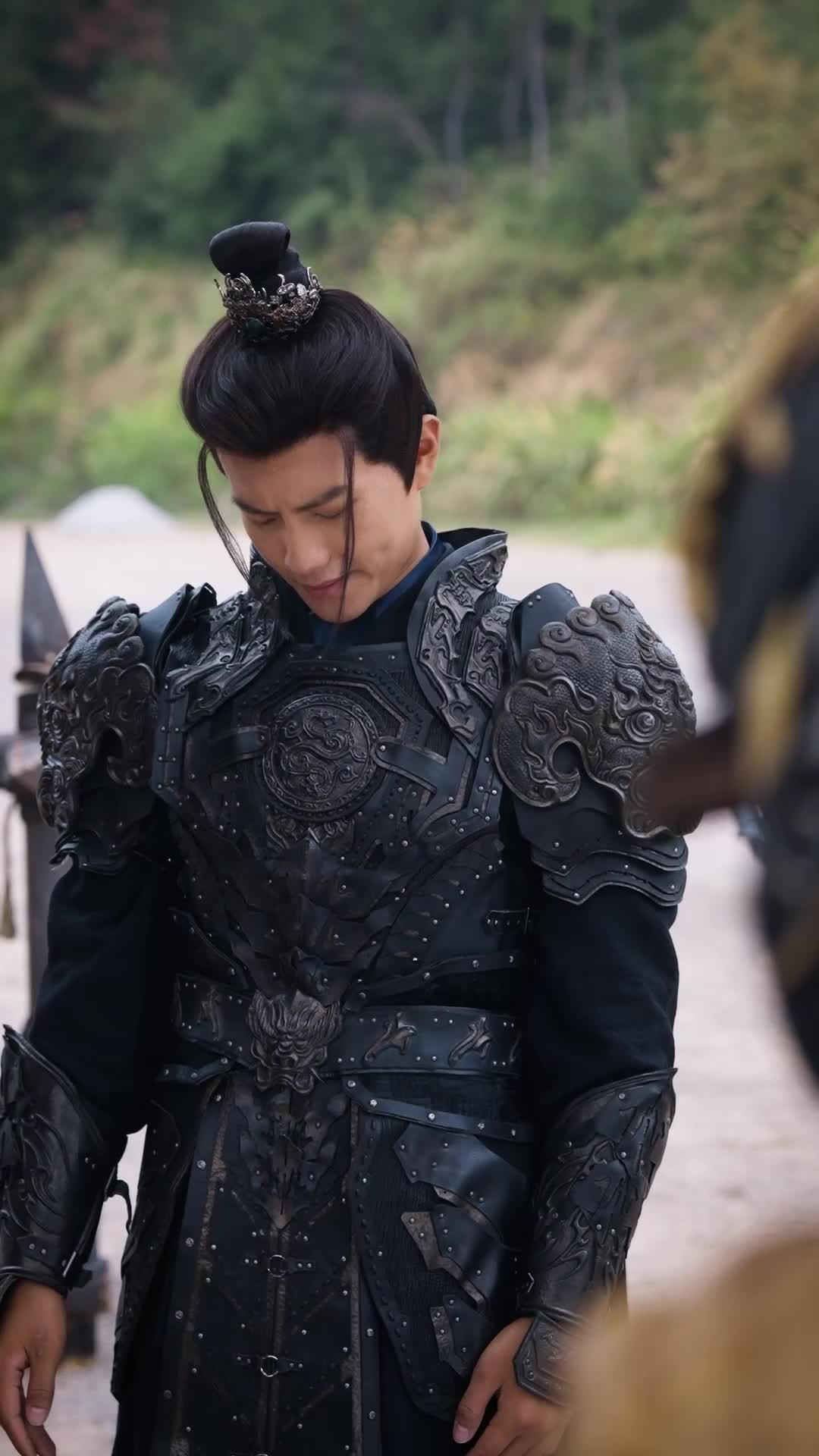 First, consider the young general in black—let’s call him Jing Feng, since his name echoes in the script’s subtext like a war drum. His armor isn’t merely decorative; it’s a second skin, carved with coiled dragons and celestial motifs that suggest he’s not just a soldier, but a vessel of legacy. Yet watch how he moves: at 0:01, he adjusts his belt with both hands—not out of vanity, but ritual. He’s grounding himself. Then, at 0:04, his expression tightens. Not anger. Not fear. Something subtler: *recognition*. He sees something in the old man’s gaze that unsettles him—not because it’s hostile, but because it’s *knowing*. That’s when the real battle begins: not on the field, but in the space between two men who’ve never drawn swords yet already feel the weight of centuries pressing down on their shoulders.