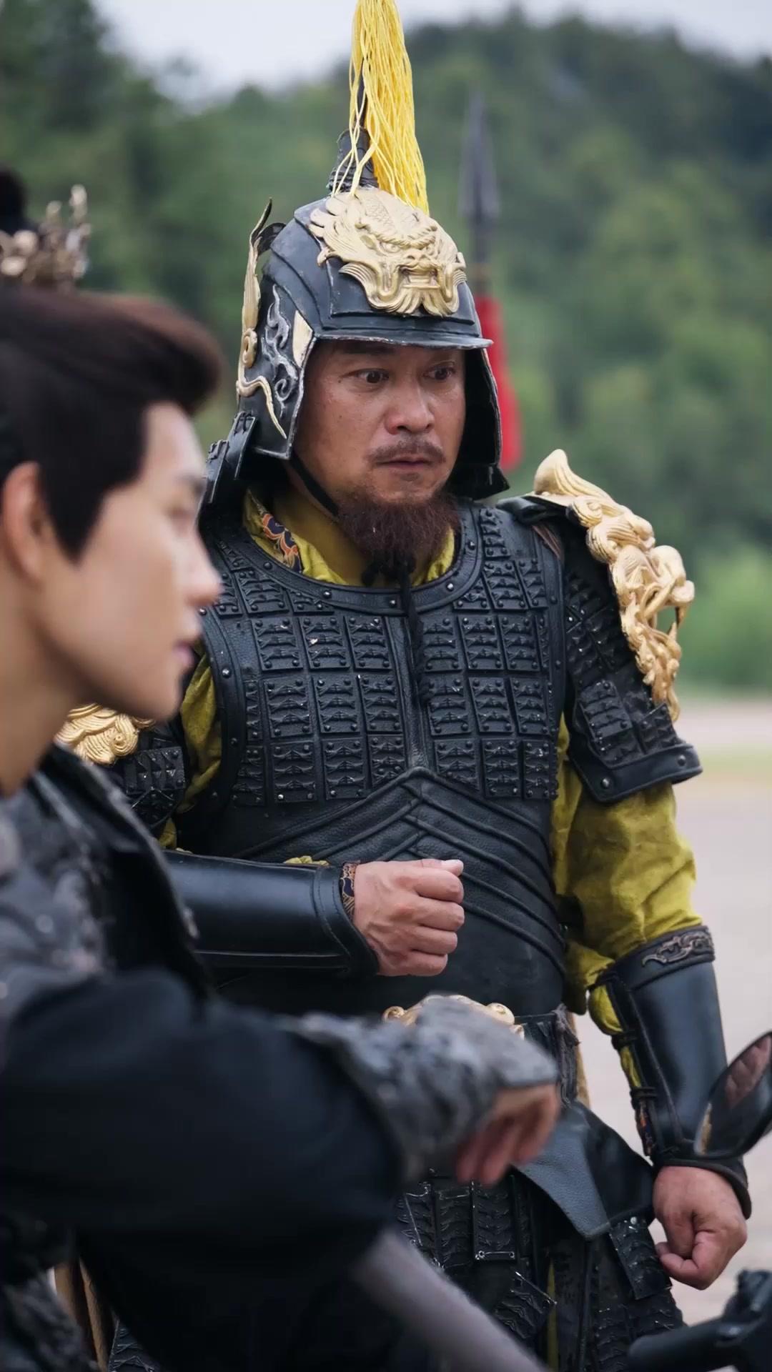 Picture this: a man in layered lamellar armor, black lacquer gleaming under diffuse daylight, golden lion heads glaring from his shoulders like sentinels of a fallen dynasty. His helmet bears a plume of yellow silk—bright, defiant, absurdly alive against the muted greens of the forest behind him. This is General Chen Hao, and for the first thirty seconds of the clip, he doesn’t move much. He *breathes*. Deeply. His chest rises and falls beneath the rigid plates, each inhalation a negotiation with gravity, with memory, with the unbearable weight of command. Then—his face crumples. Not in rage. Not in shame. In *grief*. A single tear tracks through the stubble on his cheek, cutting a path through dust and old sweat. He blinks hard, jaw tightening, fists clenching—not to strike, but to *contain*. That’s when you realize: this isn’t a battle scene. It’s a confession. And the confessor is wearing armor that cost more than a village’s annual harvest.