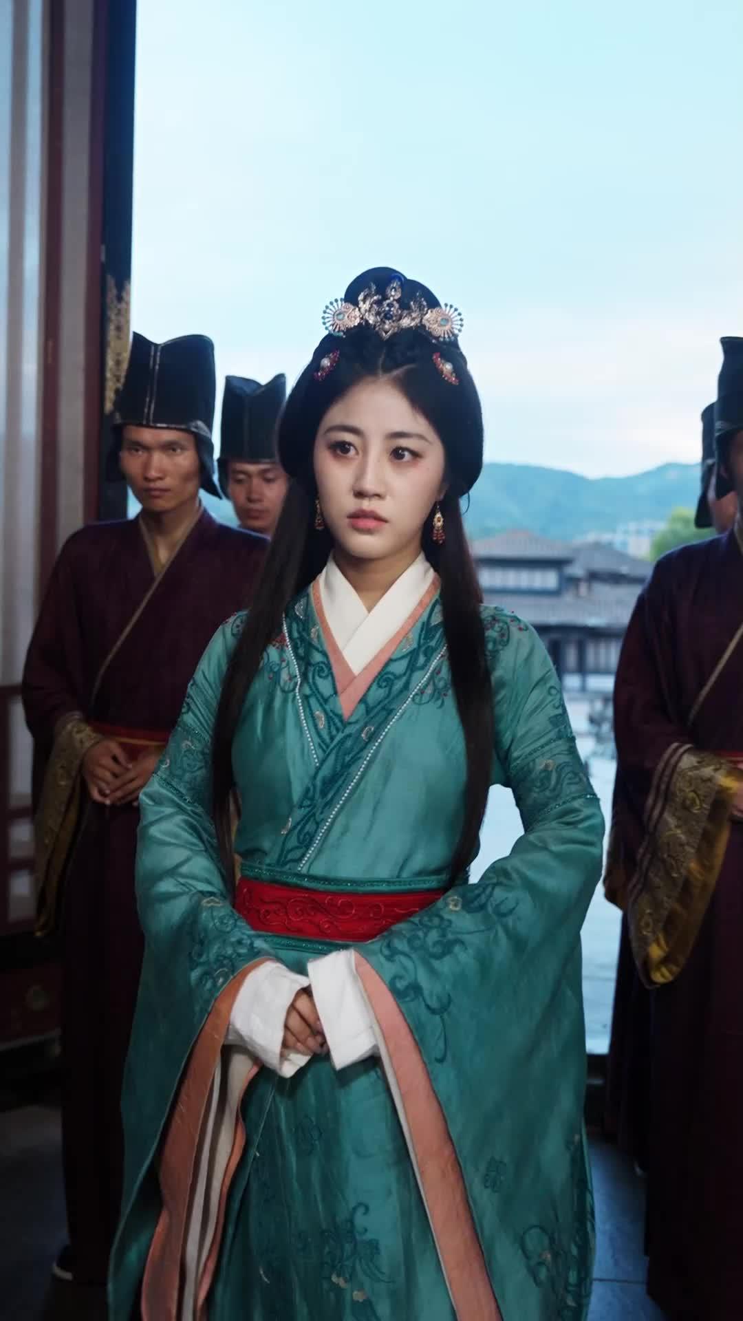 First, Ling Xiu. Teal silk, layered with silver-threaded vines that coil around her wrists like serpents ready to strike. Her crown? Not just jewelry—it’s a map. The central blue gem represents the southern river provinces; the flanking gold discs, the twin mountain passes guarding the western frontier. She doesn’t wear her status; she *wears her strategy*. Notice how she never breaks eye contact with Shen Wei, even when others look away. Her hands remain clasped—not out of subservience, but control. In Han-era protocol, open palms signal vulnerability; closed fists, aggression. Hers are neither. They’re *contained*. A gesture of restraint that implies she could unleash chaos at any moment—but chooses not to. That’s power. Real power. Not the kind that shouts, but the kind that waits until the room is so tense, even the dust motes hang still in the air.