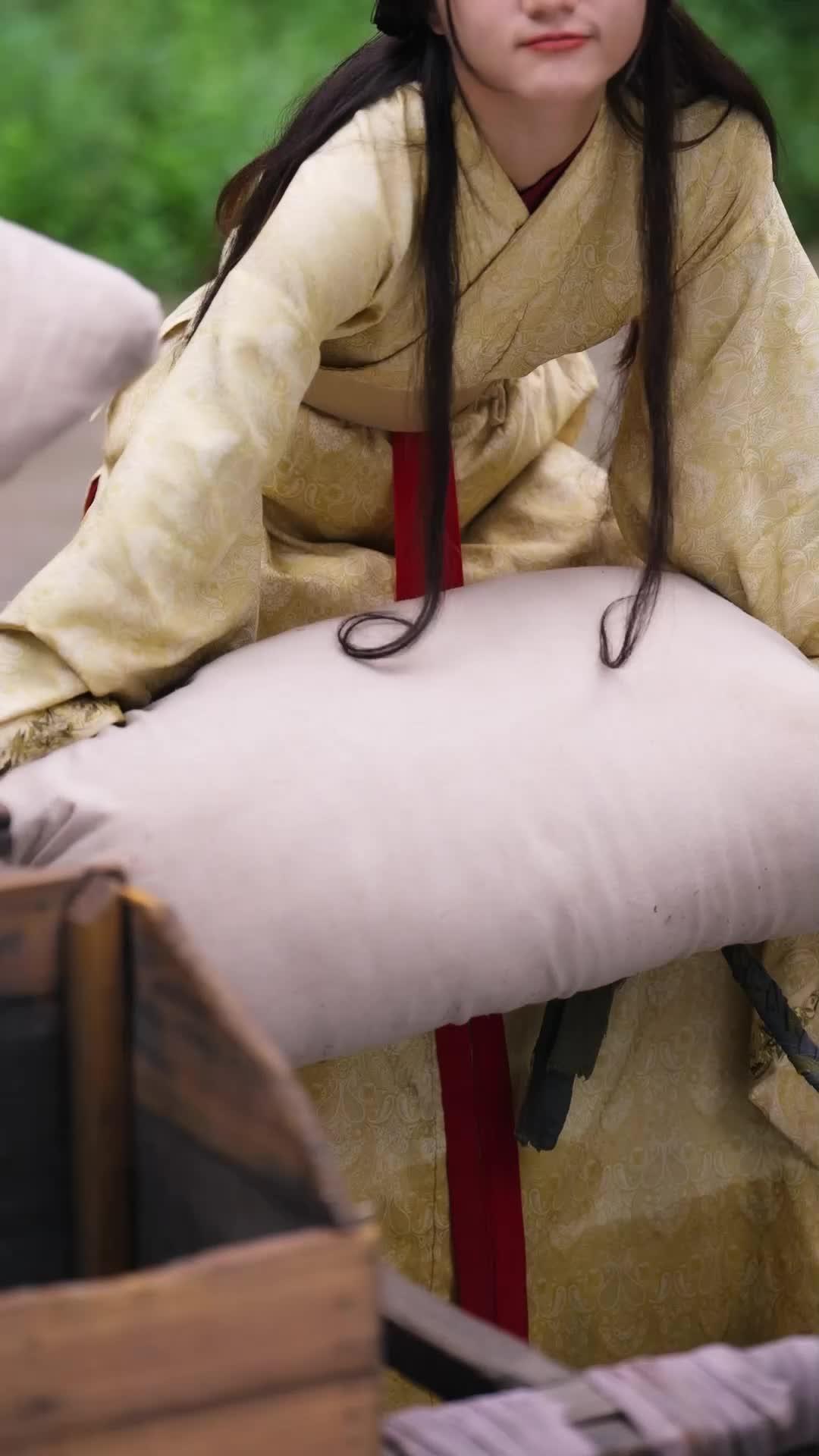 Let’s talk about the moment the yellow scroll unfurls—not with fanfare, but with the quiet inevitability of a clock striking midnight. Up until that point, the conflict in this sequence from *The Courtyard of Whispers* feels almost domestic: three people arguing over sacks of grain, a cart, a misplaced gesture. But the scroll changes everything. It’s not just paper and ink; it’s authority made visible, tradition weaponized, and the fragile illusion of camaraderie shattered in a single ripple of silk. Before we get there, though, let’s linger on the human details—the ones that make this scene ache with realism. Li Xiu’s robe is slightly rumpled at the hem, as if she’s been kneeling or bending for hours. Her hairpins, though ornate, are practical—no dangling jewels that might catch on rope or wood. She’s dressed for function, not display. Contrast that with Lady Shen, whose crimson gown flows like liquid defiance, her hair coiled in intricate braids studded with silver filigree. She doesn’t carry sacks; she carries *presence*. Every movement is calibrated, every word measured. Yet even she falters—watch her lips tremble just once, mid-sentence, when Zhao Yan turns away. That tiny crack in her composure is more revealing than any monologue could be. She’s not just angry; she’s afraid. Afraid of being ignored. Afraid of being proven wrong. Afraid that the system she trusts will fail her.