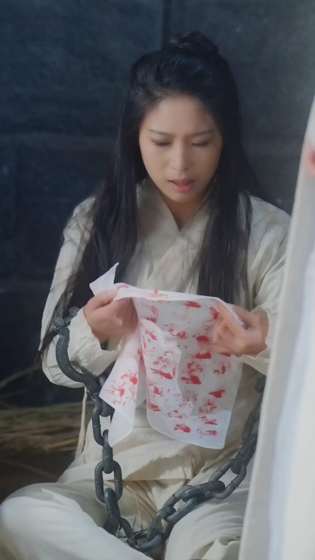 Watch how she handles the handkerchief. Not with shame, but with ritual. She unfolds it with the reverence of a priestess presenting a sacred relic. Her fingers trace the edges of the bloodstains—not cleaning them, not hiding them, but *highlighting* them. When Lady Jing approaches, the prisoner doesn’t lower her gaze. She lifts the cloth higher, forcing Jing to either look away or confront the evidence. And Jing does look. Her expression is masterful: composed on the surface, but her left eyelid twitches—a tiny betrayal of inner turbulence. She’s not shocked by the blood. She’s shocked by the *certainty* in the prisoner’s eyes. Because this isn’t the first time they’ve met in this cell. This is a replay. A reenactment. A performance staged for an unseen audience—perhaps the gods, perhaps the ghosts of those whose blood now decorates the linen. The prisoner’s laughter, which erupts midway through the sequence, isn’t hysteria. It’s liberation. In that moment, she sheds the role of victim and steps into the role of oracle. Her voice rises, not in pitch, but in *authority*. She points—not at Jing, but *past* her, toward the barred doorway, as if addressing someone beyond the frame. “You think you’ve won?” she seems to say, though no words are heard. The silence is louder than any shout.