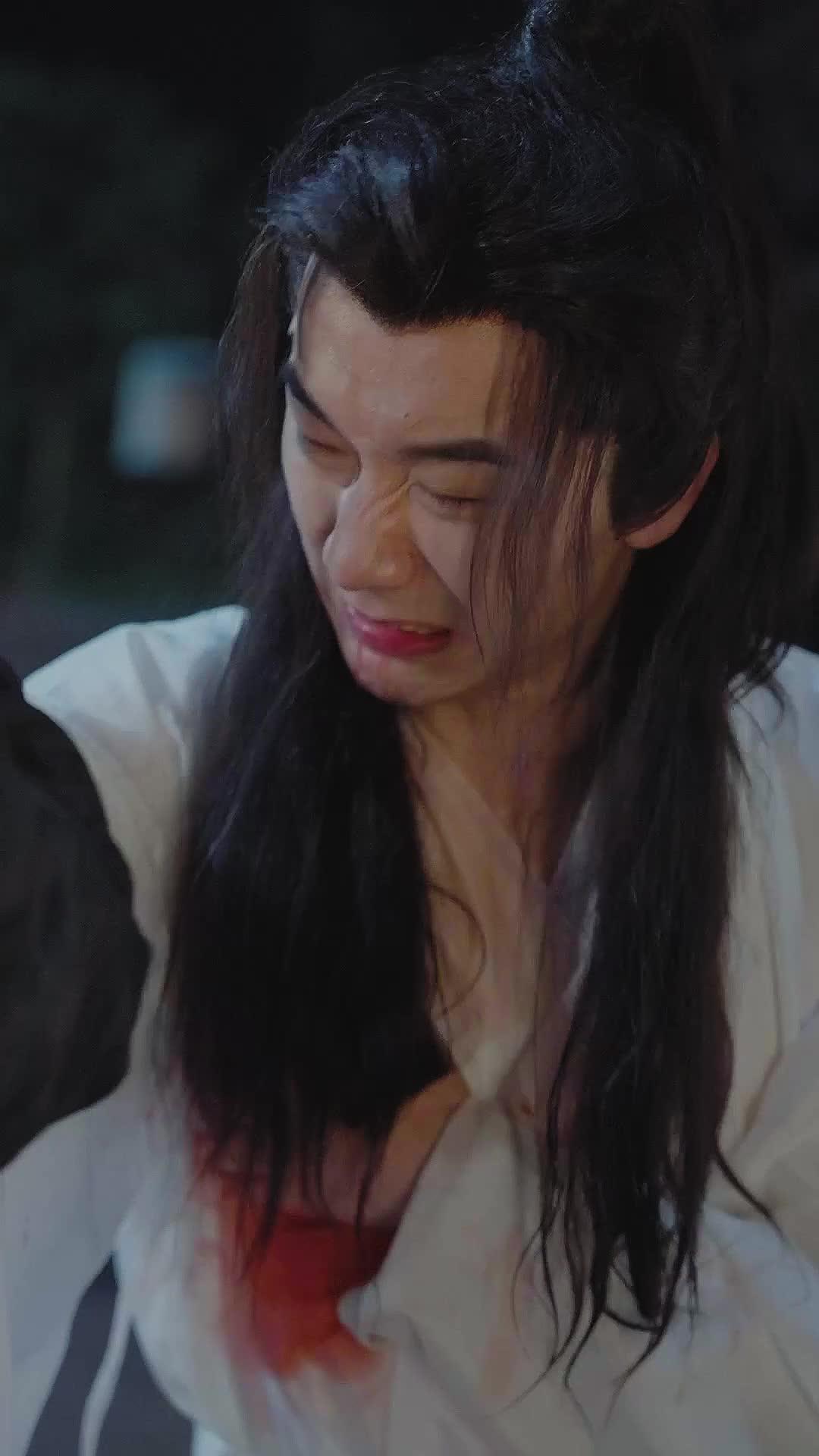 There’s a moment in *In the Name of Justice*—around the 1:10 mark—that lingers like smoke after a fire. A man in white robes, blood blooming across his chest like a grotesque flower, lifts his head and grins. Not a smirk. Not a grimace. A full, teeth-baring, eyes-crinkling smile—wet with sweat, smeared with crimson, utterly unhinged. The crowd behind him flinches. One woman in red—Xiao Man, her braids threaded with crimson beads—stares, mouth slightly open, as if she’s just realized the monster she thought she knew has been wearing a human face all along. That grin isn’t defiance. It’s revelation. It’s the sound of a dam breaking inside a man who’s been pushed past the edge of reason, past pain, past even fear. He doesn’t laugh *at* them—he laughs *with* the absurdity of it all: the hypocrisy of the tribunal, the performative outrage of the onlookers, the sheer theatrical cruelty of justice served on a wooden platform under flickering torchlight. His hair is matted, his robe torn, his lip split—but his eyes? They’re bright. Too bright. Like someone who’s finally seen the script and decided to improvise.