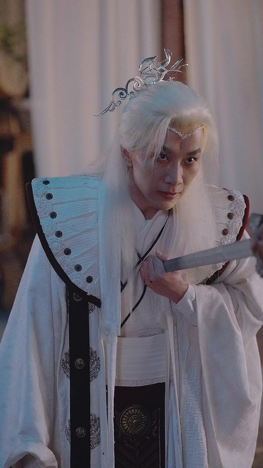 Let’s talk about what just unfolded in that tight, emotionally charged sequence from *In the Name of Justice*—because honestly, if you blinked, you missed a whole saga. We’re not watching a sword fight; we’re witnessing a psychological unraveling, dressed in silk and silver filigree. The white-haired figure—let’s call him Ling Xuan for now, since his name echoes through the whispers of the palace corridors—isn’t just holding a blade; he’s holding his own crumbling identity. His costume alone tells a story: pristine white robes edged with black trim, ornate shoulder guards like folded wings, a delicate phoenix-shaped hairpiece that glints under the soft lantern light. Every detail screams ‘high-born’, ‘sacred’, ‘untouchable’. Yet his hands tremble—not from fear, but from disbelief. He grips the hilt of the sword not to strike, but to steady himself, as if the weapon is the only thing anchoring him to reality. His eyes dart, widen, narrow—each micro-expression a silent scream. When he lifts his gaze toward the other man, it’s not anger we see first. It’s recognition. A dawning horror that this confrontation was inevitable, perhaps even invited. He doesn’t speak much, but when he does, his voice cracks—not with weakness, but with the weight of years of silence finally breaking. That moment at 00:12, when he flinches and clutches his chest? That’s not theatrical pain. That’s the physical manifestation of betrayal hitting like a blow to the solar plexus. He thought he knew the rules of this world—the hierarchy, the oaths, the sacred bloodlines. But now, standing before him is Jian Yu, the dark-cloaked challenger, whose very presence disrupts the myth Ling Xuan has built around himself. Jian Yu’s attire is stark contrast: deep indigo layered under a heavy black cloak, his hair tied high with a simple jade pin—no ornamentation, no pretense. His stance is aggressive, yes, but his eyes… they’re not filled with hatred. They’re weary. Haunted. He points the sword not as a threat, but as an accusation. And here’s the twist no one saw coming: Jian Yu isn’t here to kill. He’s here to *remind*. To force Ling Xuan to remember who he was before the title, before the crown, before the white hair became a symbol of purity rather than a curse. *In the Name of Justice* isn’t just a slogan—it’s a question being hurled across the courtyard like a gauntlet. What *is* justice when the judge is the accused? When the lawgiver broke the first law? The setting amplifies this tension: warm interior lighting behind Ling Xuan suggests safety, tradition, the past; while Jian Yu stands in the cool shadows of the outer garden, where truth often hides until it’s ready to strike. The camera lingers on their faces—not cutting away, forcing us to sit in the discomfort. At 00:37, Ling Xuan exhales sharply, almost laughing, but it dies in his throat. That’s the moment he realizes: he’s been playing a role so long, he’s forgotten how to be real. Jian Yu’s mouth moves at 00:58—he says something quiet, something that makes Ling Xuan’s breath hitch again. We don’t hear it, and that’s the genius of the scene. The silence speaks louder than any monologue. Later, at 01:02, Ling Xuan touches his own collar, fingers tracing the embroidered seam—as if trying to confirm he’s still wearing the same robe, still the same man. But he’s not. The white hair, once a mark of wisdom, now looks like ash. The phoenix hairpin, meant to signify rebirth, feels like a cage. *In the Name of Justice* forces us to ask: when the system is rotten, is rebellion treason—or redemption? Ling Xuan’s hesitation isn’t cowardice; it’s conscience waking up after decades of slumber. And Jian Yu? He’s not the villain. He’s the mirror. The final shot—Ling Xuan lowering the sword, not in surrender, but in resignation—tells us everything. He knows the battle isn’t won with steel. It’s won with confession. With shame. With the unbearable lightness of truth. This isn’t just a duel. It’s a reckoning. And *In the Name of Justice* has only just begun to dig into the graves it buried long ago.