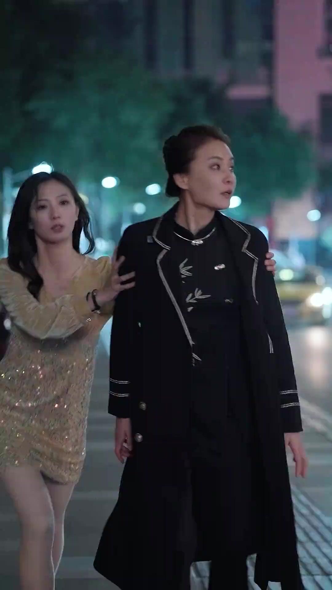 The camera circles them slowly, capturing the contrast: Li Na, radiant in sequins, trembling like a leaf in wind; Lin Mei, draped in black, rooted like an oak. The lanterns above cast long, dancing shadows on the pavement—shadows that seem to move independently, stretching toward the edge of the frame, where the van’s taillights briefly flare in the distance. It’s not a coincidence. It’s a promise.