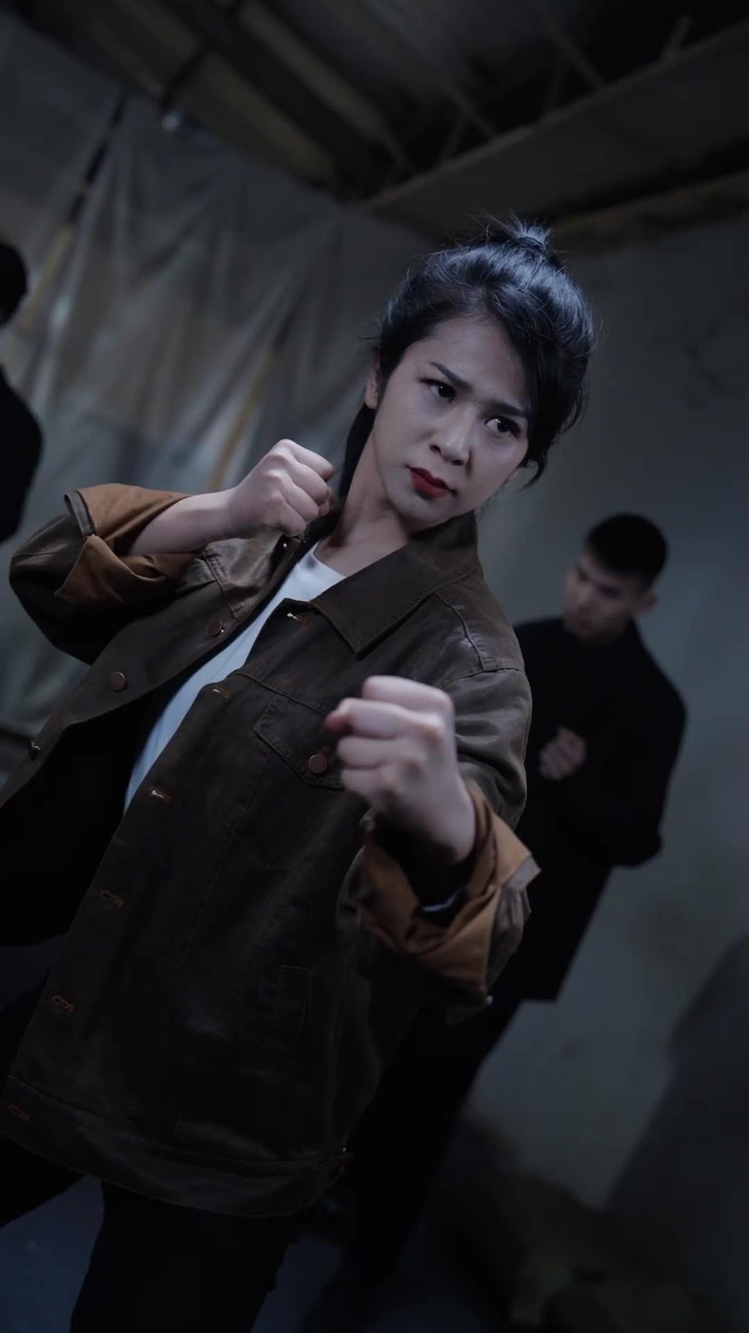 Let’s talk about that raw, unfiltered moment in *Kungfu Sisters* when the two leads—Li Na and Xiao Mei—go from hostages to hunters in under thirty seconds. No flashy CGI, no slow-mo bullet time, just sweat, grit, and a blue couch that somehow becomes the centerpiece of a tactical revolution. The scene opens with Li Na, hair half-pulled back, eyes sharp as broken glass, standing in a dim industrial corridor—concrete walls, peeling paint, a single flickering bulb overhead. She’s not posing. She’s *waiting*. Behind her, Xiao Mei sits bound on a worn-out sofa, mouth gagged with duct tape, wrists tied with rope that’s already frayed at the edges. You can see the panic in her eyes, but also something else: recognition. She knows Li Na isn’t just here to rescue her. She’s here to *reclaim* something.