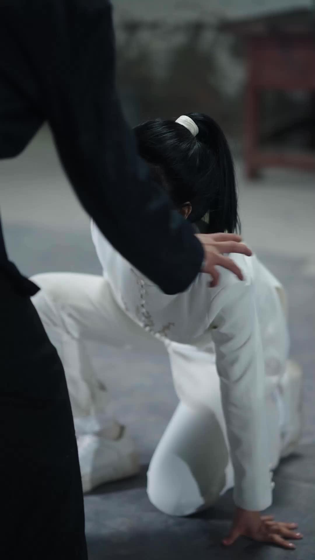 In a dim, concrete-walled chamber that smells faintly of dust and old oil drums, the tension doesn’t just hang in the air—it *pulses*, like a wound about to burst. This isn’t a fight scene from some generic action flick; it’s a psychological duel dressed in silk and blood, where every gesture carries the weight of betrayal, loyalty, and something far more dangerous: self-recognition. At the center stands Li Wei, her white suit immaculate except for the subtle embroidery—floral motifs that seem almost mocking against the brutality unfolding around her. Her hair is pulled back in a tight ponytail, secured with a simple white ribbon, as if she’s trying to hold herself together with the same restraint. But her lips tell another story: smeared crimson, a trickle of blood escaping the corner of her mouth—not from a punch, but from the sheer force of her own will refusing to break. She kneels, then rises, not with grace, but with the jagged momentum of someone who’s been pushed too far and finally decides to push back. Her hands grip the black sleeve of Master Chen, not in submission, but in challenge. His smile—calm, knowing, almost paternal—is the most unsettling thing in the room. He doesn’t flinch when she grabs him. He *leans* into it, as if inviting her to test how deep her resolve really goes. That’s the genius of Kungfu Sisters: it never lets you mistake violence for power. Power here is in the silence between breaths, in the way Li Wei’s eyes narrow not with rage, but with dawning realization—she sees herself reflected in his calm, and it terrifies her more than any threat. Meanwhile, off to the side, Xiao Mei sits bound on a worn leather chair, wrists tied with coarse rope, her face streaked with tears and fear. She wears a modern black jacket over a plain white tee—a visual contrast to Li Wei’s traditional elegance—and her terror feels raw, unmediated. Yet even in her helplessness, there’s a flicker of recognition when she watches Li Wei stand. It’s not admiration. It’s something quieter: the spark of shared trauma, the silent acknowledgment that they’re both trapped in the same web, just at different nodes. And then—enter Lin Ya. Not with fanfare, but with presence. She steps in like smoke filling a crack, her black tunic embroidered with golden phoenixes, her posture relaxed yet coiled. She doesn’t speak. She simply places a hand on Li Wei’s shoulder, and for a split second, the world tilts. Li Wei’s expression shifts—not relief, not gratitude, but *recognition*. Lin Ya isn’t rescuing her. She’s reminding her: You are not alone in this. You are not the only one who remembers what was promised. The camera lingers on their linked arms, the white and black fabric brushing like opposing currents in a river. This is where Kungfu Sisters transcends genre. It’s not about who wins the fight; it’s about who survives the aftermath without losing themselves. Master Chen’s glasses catch the overhead light as he watches them, his smile softening into something almost tender—yet his fingers twitch near his waist, where a small green vial peeks from his inner pocket. A detail most viewers miss on first watch. Is it poison? Medicine? A token? The ambiguity is deliberate. In Kungfu Sisters, every object has a double meaning, every glance a hidden agenda. Even the setting—the abandoned warehouse with its peeling paint and rusted beams—feels like a character itself, echoing decades of unresolved conflict. The lighting is cool, clinical, casting long shadows that stretch across the floor like accusations. When Li Wei finally breaks free—not by overpowering Chen, but by *refusing* to let go of his arm while turning her body away, forcing him to either release her or be dragged into her orbit—that’s the moment the film pivots. It’s not a victory. It’s a declaration. She’s no longer playing by his rules. And Chen? He doesn’t punish her. He *nods*. As if he’s been waiting for this exact moment. Later, in the split-screen sequence—Li Wei above, fists clenched, eyes blazing with defiance; Lin Ya below, equally poised, but her gaze fixed not on the enemy, but on Li Wei—it becomes clear: this isn’t a rivalry. It’s a symbiosis. They’re two halves of a single martial philosophy, forged in fire and silence. Kungfu Sisters doesn’t give us heroes or villains. It gives us women who’ve learned to weaponize their vulnerability, to turn pain into precision, to speak in kicks and glances when words have long since failed them. The final shot—Lin Ya’s hand tightening on Li Wei’s wrist, not to restrain, but to anchor—says everything. They’re not running. They’re regrouping. And somewhere in the background, Xiao Mei watches, her breathing slowing, her eyes no longer wide with panic, but sharp with calculation. The rope is still there. But the knot? It’s beginning to loosen. That’s the real fight in Kungfu Sisters: not against men in black tunics, but against the belief that survival requires surrender. Li Wei bleeds, yes—but she walks. Lin Ya stands beside her, not as savior, but as witness. And Xiao Mei? She’s learning to watch, to wait, to understand that sometimes, the most dangerous move is the one you don’t make… yet. The film’s brilliance lies in its refusal to resolve. There’s no triumphant exit, no grand speech. Just three women in a room, breathing the same heavy air, each carrying a different kind of wound, each choosing—moment by moment—what kind of person they’ll become next. That’s why Kungfu Sisters lingers long after the screen fades. It doesn’t ask you to cheer. It asks you to remember: when the world tries to pin you down, what do you do with your hands? Li Wei grips the enemy’s sleeve. Lin Ya holds her sister’s arm. Xiao Mei counts the seconds until she can move again. And Master Chen? He smiles, because he knows the most dangerous fighters aren’t the ones who stri