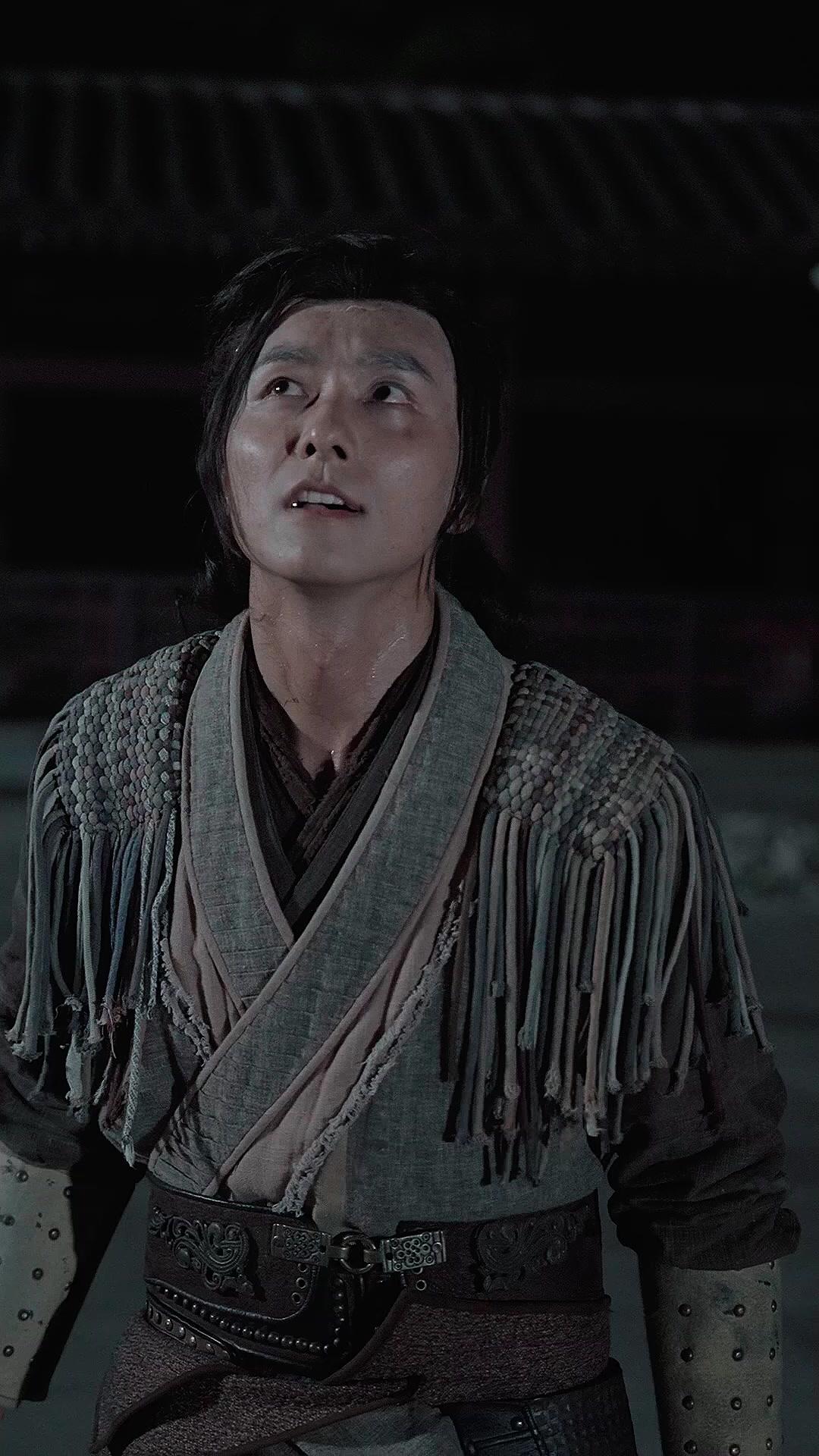 In the dead of night, beneath the skeletal silhouette of a traditional courtyard—its tiled roof barely visible against the ink-black sky—a single figure stands alone, trembling not from cold but from the weight of something far heavier: inevitability. This is not just a scene; it’s a psychological threshold. The younger warrior, Jian Feng, clad in frayed grey robes stitched with braided tassels and reinforced forearm guards, doesn’t merely hold his sword—he grips it like a lifeline, knuckles white, breath ragged, eyes darting upward as if searching for divine intervention or perhaps just a reason to keep standing. His hair, long and dark, clings to his temples with sweat, streaked with grime and something darker—blood? Or memory? The camera lingers on his face not to admire his features, but to dissect his unraveling resolve. Every micro-expression tells a story: the flinch when he hears footsteps behind him, the way his jaw tightens before he turns—not with aggression, but with the weary resignation of a man who knows he’s already lost, yet refuses to kneel. That hesitation, that split-second delay before he pivots, speaks louder than any monologue ever could. He’s not afraid of death. He’s afraid of what comes after—of being remembered not as a hero, but as a failure who let the flame go out.