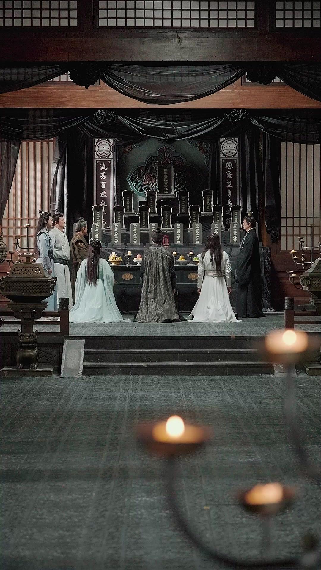 Let’s talk about the most radical act in ancient Chinese drama: *not standing up*. In the opening minutes of this Legend of Dawnbreaker sequence, six people kneel before an altar draped in black, and yet—somehow—the entire power structure of the Tang Clan trembles. Why? Because kneeling, in this context, isn’t submission. It’s *delay*. It’s the pause before the avalanche. The camera doesn’t rush. It lingers on the backs of their robes, the way the fabric pools around their knees, the subtle shift in weight as Li Chen’s foot tenses beneath his sleeve. He’s not praying. He’s calculating. Every breath he takes is calibrated, every blink timed like a metronome counting down to detonation.