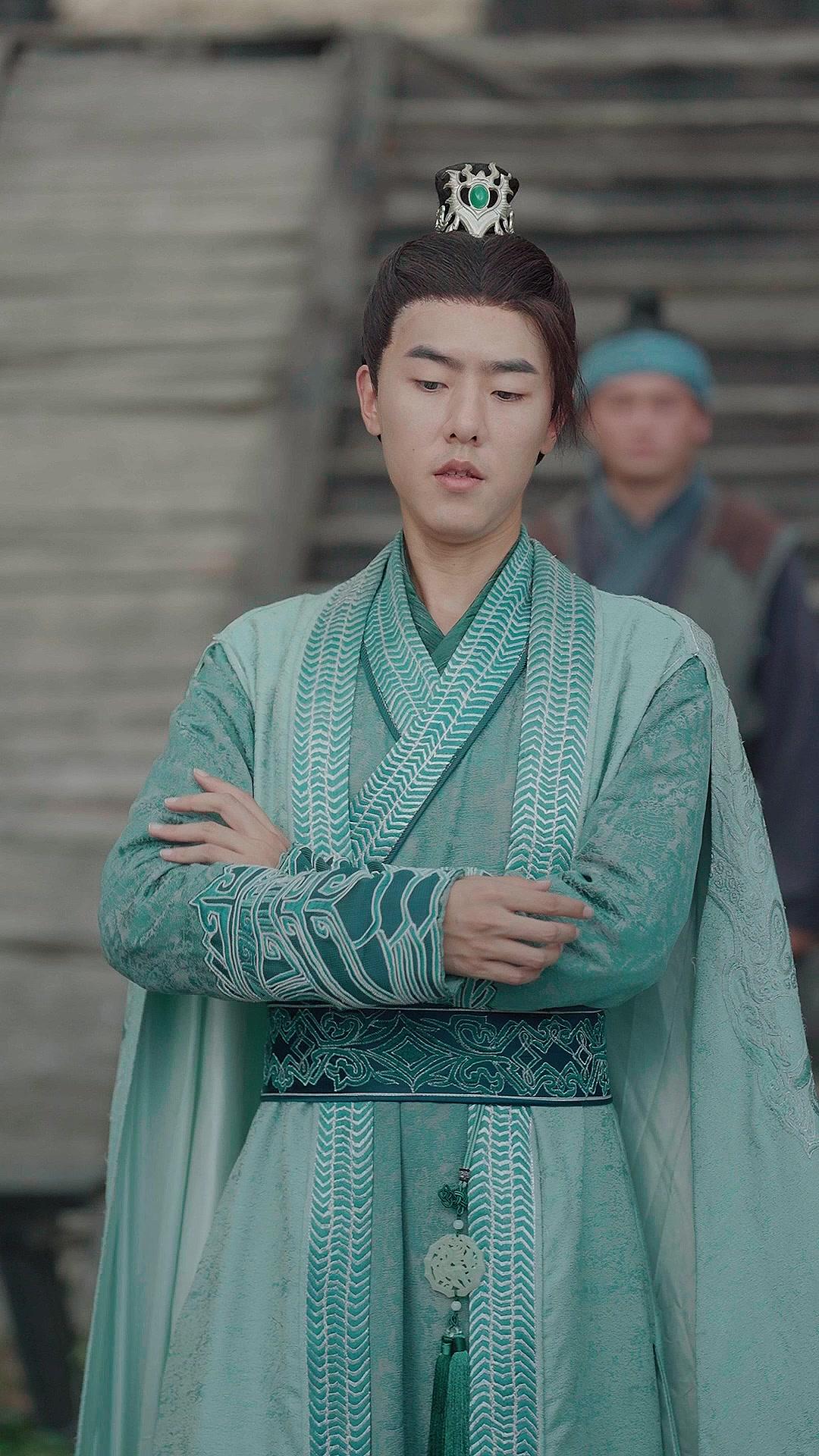The village square is quiet, but not peaceful. Dust hangs in the air, caught in shafts of diffused daylight filtering through the canopy of distant pines. Wooden planks groan underfoot. A rusted hinge squeals on a half-open gate. And in the middle of it all, four people stand in a loose circle, their postures telling a story no script could fully capture. This is the heart of Legend of Dawnbreaker—not the grand battles or mystical artifacts, but these suspended moments where a single raised eyebrow can unravel years of careful deception. Li Chen, resplendent in sea-green silk, stands with his arms crossed, a pose that reads as defiance but feels more like defense. His crown—jade set in silver filigree—catches the light with every slight turn of his head, a constant reminder of status, of expectation, of the weight he carries not on his shoulders, but in his silence. He speaks, yes, but his words are measured, clipped, as if each one is weighed before release. His eyes, though, betray him: they dart toward Feng Wei, then away, then back again, like a compass needle struggling to find true north. He is not angry. He is *afraid*—not of Feng Wei himself, but of what Feng Wei represents: the unvarnished truth, the version of history that doesn’t flatter Li Chen’s current role.