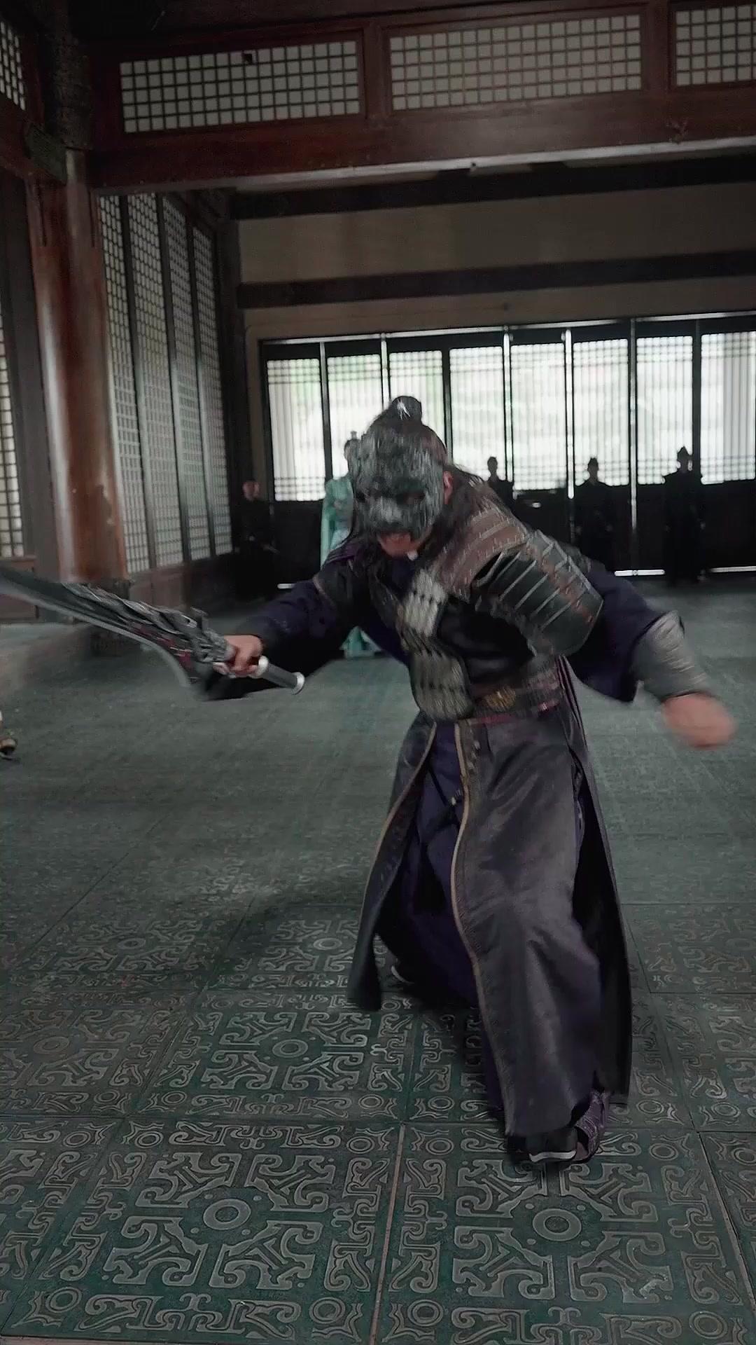 The fight between Shen Wei and Zhao Yun is choreographed like a dance of mutual destruction. They move in sync, almost symbiotic, each anticipating the other’s next move not through training, but through *memory*. Watch closely: when Shen Wei blocks Zhao Yun’s overhead strike, his left hand doesn’t grip the hilt—he presses his palm against the flat of the blade, fingers spread, as if feeling its pulse. That’s not defense. That’s *diagnosis*. He’s reading the weapon, the wielder, the intention behind the swing. And Zhao Yun? He doesn’t roar. He *grunts*, a low, animal sound that vibrates in his chest, his mask cracking slightly at the temple—not from impact, but from strain. His eyes, visible through the slits, aren’t filled with rage. They’re haunted. He fights like a man who’s already lost, but refuses to admit it. That’s why the fall hits so hard. When he stumbles, knees hitting the engraved floor, blood seeping from his mouth, he doesn’t curse. He looks up—at Li Zhen—and *smiles*. A broken, knowing smile. As if to say: *I see you. I always did.*
