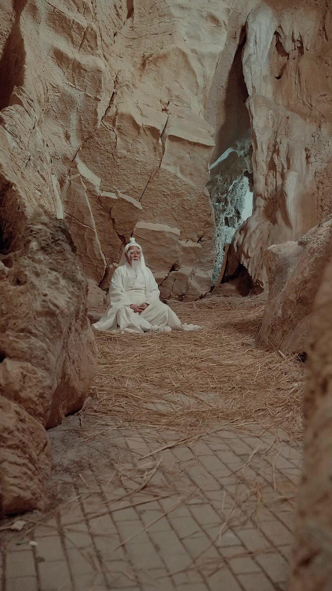 The canyon doesn’t welcome visitors. It tolerates them—briefly, grudgingly—before swallowing their echoes whole. And yet, here they stand: three figures suspended in a moment that feels less like a scene and more like a fault line about to rupture. At the center, Elder Bai, draped in white like a relic unearthed from a forgotten temple, his presence radiating the kind of calm that precedes catastrophe. But look closer. His hands—though folded serenely in his lap at first—twitch when Li Chen speaks. Not fear. Anticipation. As if he’s been waiting decades for this exact inflection in the younger man’s voice. The straw beneath them isn’t just bedding; it’s tinder. And someone is about to strike a match.