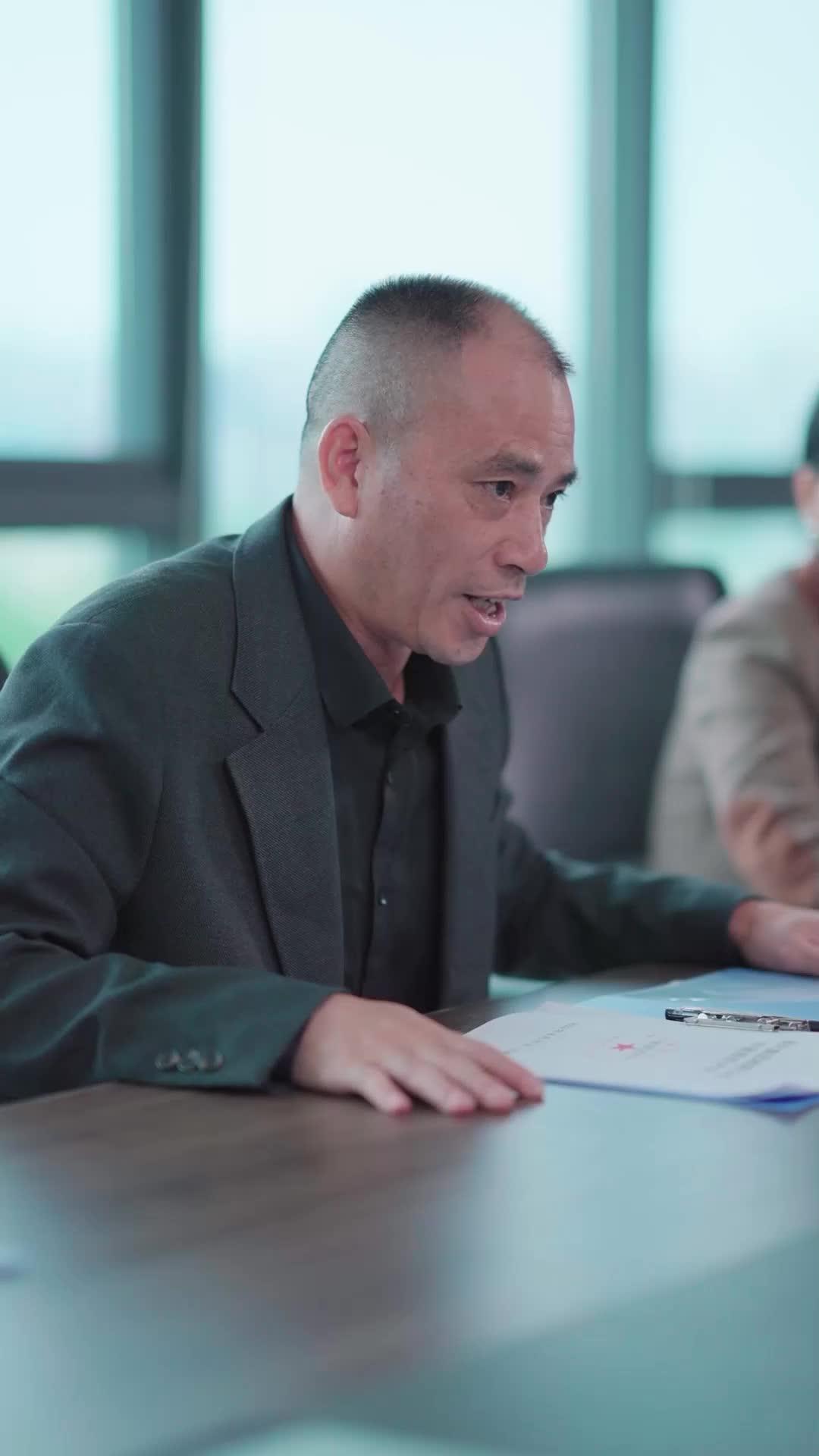 In the sleek, glass-walled conference room of what appears to be a high-stakes corporate headquarters—perhaps the fictional conglomerate ‘Vesper Group’—a quiet storm is brewing beneath polished surfaces and tailored suits. The opening shot lingers on Lin Jian, a man whose shaved head and sharp jawline suggest years of disciplined authority, yet his eyes betray something softer, more uncertain, as he flips through a blue folder stamped with red ink and official seals. His voice, though firm, carries a tremor—not of fear, but of moral hesitation. He’s not just presenting documents; he’s delivering verdicts. And in this world, every signature is a confession.