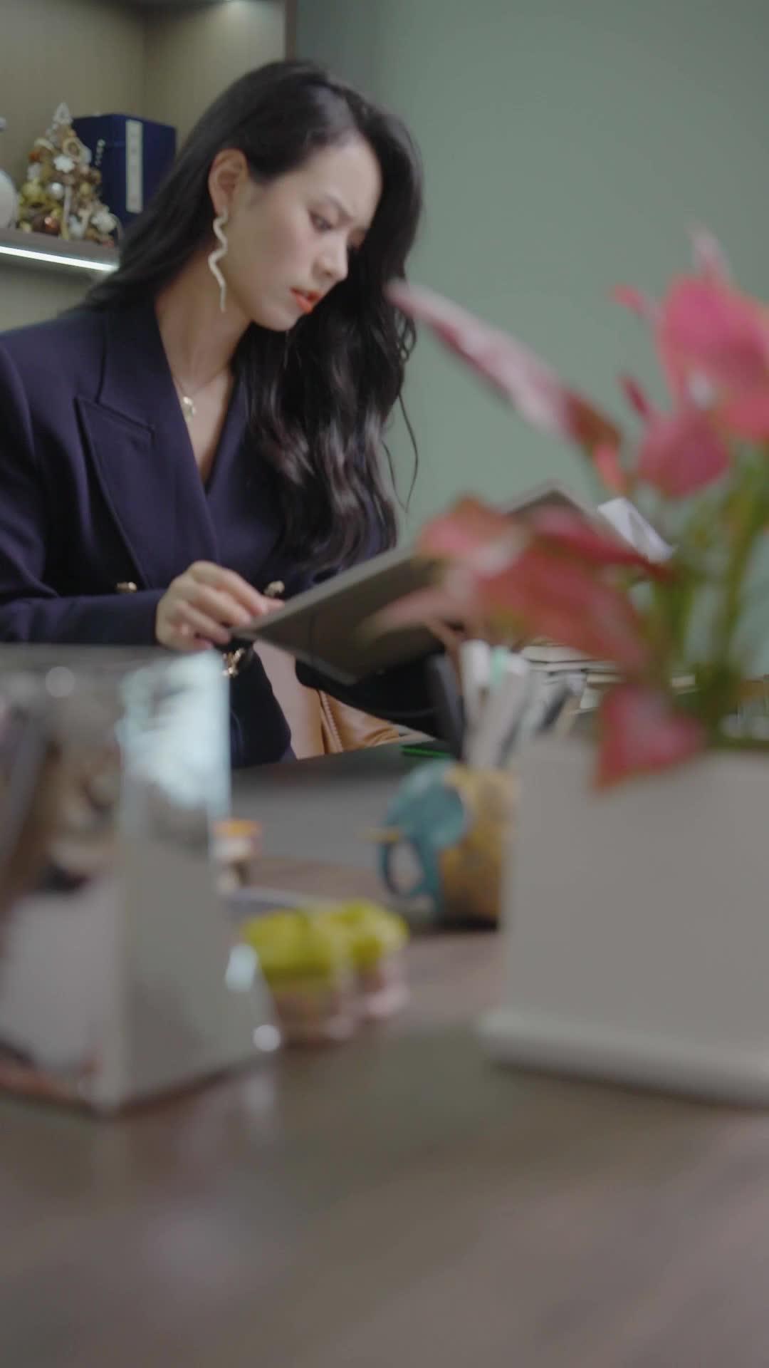 There’s a particular kind of horror in modern office life—not the jump-scare variety, but the slow, creeping dread of being seen *too clearly*. In *Love, Lies, and a Little One*, that horror is embodied by Lin Xiao, seated behind a desk that functions less as furniture and more as a throne. Her navy blazer, punctuated by gold buttons and a chain-link belt, isn’t just fashion; it’s armor. Every detail is deliberate: the wavy silver earring that swings subtly with each tilt of her head, the pendant resting just above her collarbone like a seal of judgment, the way her fingers rest lightly on a leather-bound folder—not gripping it, but claiming it. She doesn’t need to speak to dominate the room. Her silence is louder than any reprimand. And when Chen Wei stumbles in, his pinstripe suit crisp but his expression frayed at the edges, the imbalance is immediate. He’s not just out of place; he’s out of time. His entrance is hesitant, almost apologetic, as if he’s already rehearsed his apology in the hallway. His hands—oh, those hands—are the true stars of his performance. Clasped, unclasped, twisted, pressed together until the skin turns pale. He’s not hiding something; he’s trying to hold himself together long enough to survive the next ten seconds.