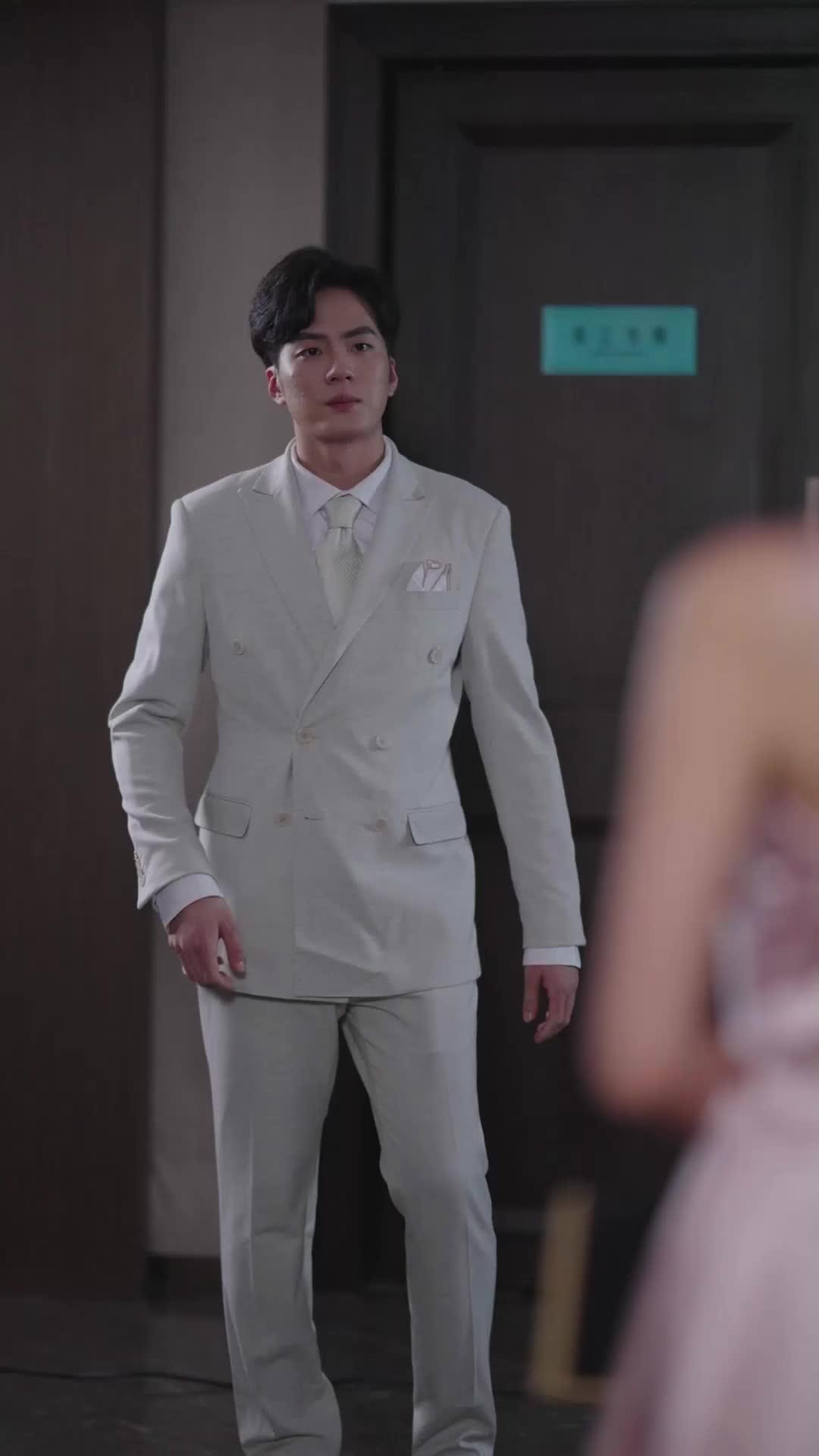 P.X., the man in the cream suit, enters first. His walk is measured, rehearsed—a man accustomed to being watched, to being *expected*. His suit is flawless, his tie perfectly knotted, his pocket square folded into a precise triangle. But watch his hands. One rests casually in his trouser pocket; the other hangs loose, fingers twitching slightly, as if resisting the urge to adjust his cuff or smooth his hair. He’s trying to project control, but his eyes give him away: they scan the space not with curiosity, but with calculation. He’s looking for someone. Or perhaps, he’s hoping *not* to find someone. When Lin appears—her pink dress shimmering under the overhead lights, her crystal necklace catching the glare like a warning beacon—his breath hitches. Just once. Barely noticeable. But it’s there. That tiny inhalation is the first crack in the façade. *Love, Lies, and a Little One* understands that desire isn’t always loud; sometimes, it’s the silence between two heartbeats.
