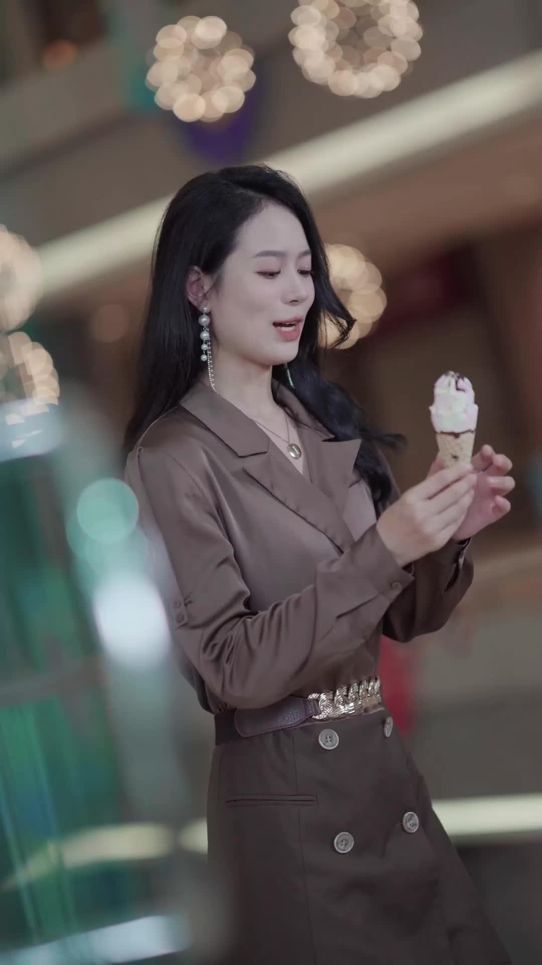 Lin Xiao is a masterclass in controlled unraveling. At first, she’s all polish: the belt buckle gleams, her earrings sway with purpose, her posture screams ‘I belong here.’ But watch her hands. In the early frames, they’re steady—holding the cone, adjusting her sleeve, brushing hair from her face. Then, after the drop, they twitch. After the red-capped man speaks, they clench. By the time she sits on that pink bench, they’re interlaced so tightly her knuckles bleach white. Her body language tells the story her face won’t admit: she’s terrified. Not of danger—but of being *wrong*. Wrong about Huo Xingzhou. Wrong about the world. Wrong about her ability to protect what matters. The phone call is the breaking point. We don’t hear the words, but we see her throat work, her jaw lock, her eyes darting as if searching for an exit that doesn’t exist. When she cries, it’s not theatrical—it’s animal. A choked gasp, a shudder in her shoulders, the way her lipstick smudges at the corner of her mouth. This isn’t melodrama. It’s realism stripped bare.