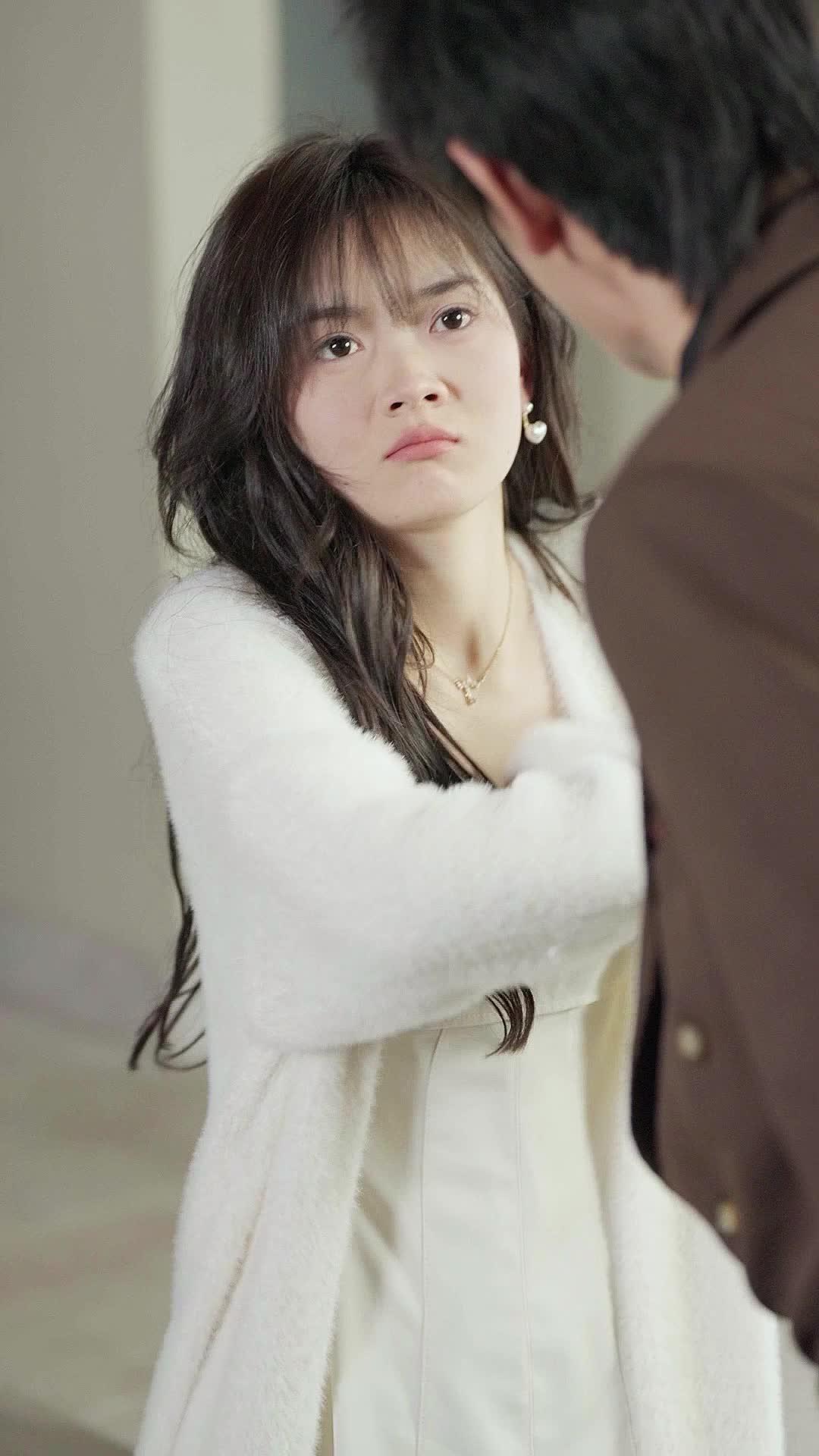 Let’s talk about that staircase scene—no, not just *a* staircase scene, but the one where every step feels like a betrayal, a plea, or a surrender, depending on who you’re watching. In this tightly framed sequence from the short drama *Whispers in the Hallway*, we witness a psychological duel between Lin Xiao and Chen Wei—not with swords or words alone, but with proximity, grip, and the unbearable weight of silence. From the very first frame, Lin Xiao stands slightly off-center, her white knit cardigan draped like armor over a cream slip dress, hair loose and framing a face caught between defiance and dread. Her earrings—tiny silver hearts—glint under the soft overhead light, almost mocking the tension building beneath them. Chen Wei, in his brown double-breasted suit, moves like a man who’s rehearsed control but forgotten how to breathe. His tie is slightly askew by the third shot, not because he’s careless, but because something inside him has already snapped.
