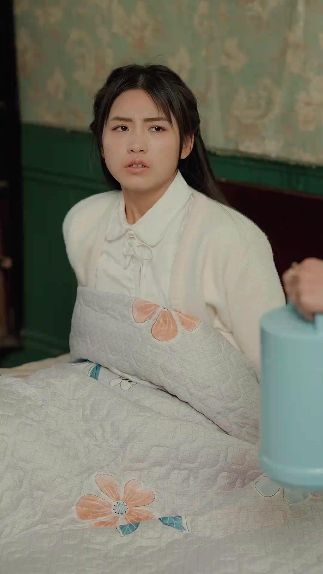 In a cramped, wallpaper-peeling bedroom where time seems to have paused between decades, *Mended Hearts* unfolds not with grand declarations but with the quiet clink of a pale blue thermos. The scene opens on Xiao Yu—her face flushed with feverish discomfort, wrapped in a quilt stitched with faded peach blossoms and tiny bees, as if nature itself is trying to soothe her. She wears a white blouse with a delicate bow at the neck, an outfit that speaks of innocence, restraint, and perhaps a life carefully curated to avoid disruption. Her eyes dart sideways—not toward the door, but toward the edge of the frame, where something unseen stirs. That’s when the thermos enters. Not held by her, not offered gently—but thrust forward by a woman whose presence alone rewrites the room’s atmosphere: Madame Lin.