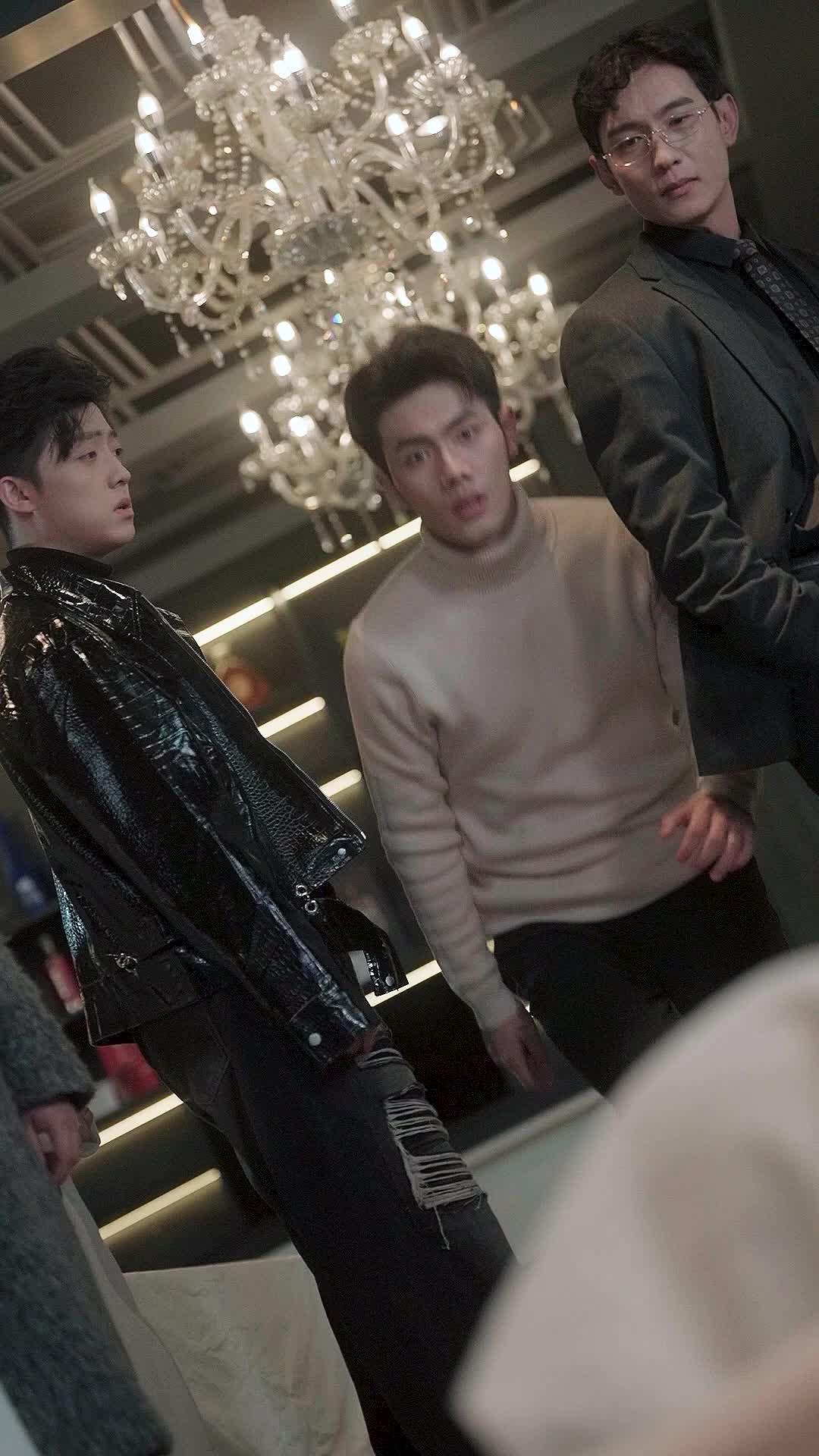 In a glittering banquet hall where crystal chandeliers cast fractured light across marble floors, a single misstep—or perhaps a deliberate collapse—unravels the veneer of elegance in Most Beloved. The scene opens with three men standing in tight formation beneath the opulence of suspended glass: Lin Zeyu in his glossy black crocodile-textured jacket, ripped jeans threaded with silver frayed threads like exposed nerves; Chen Yu in a cream turtleneck, posture rigid yet trembling at the edges; and Jiang Wei, glasses perched low on his nose, tie patterned with geometric restraint, fingers already twitching toward accusation. They are not merely guests—they are witnesses to a rupture. And then she falls. Not gracefully, not theatrically, but with the suddenness of a snapped tendon: Shen Xiaoyue, draped in a beige wool coat over a silk slip dress, her heels askew, one arm flailing as if trying to catch air itself. The crowd parts like water around a stone—some recoil, others lean in, eyes wide, breath held. This is not an accident. It’s a punctuation mark in a sentence no one saw coming.