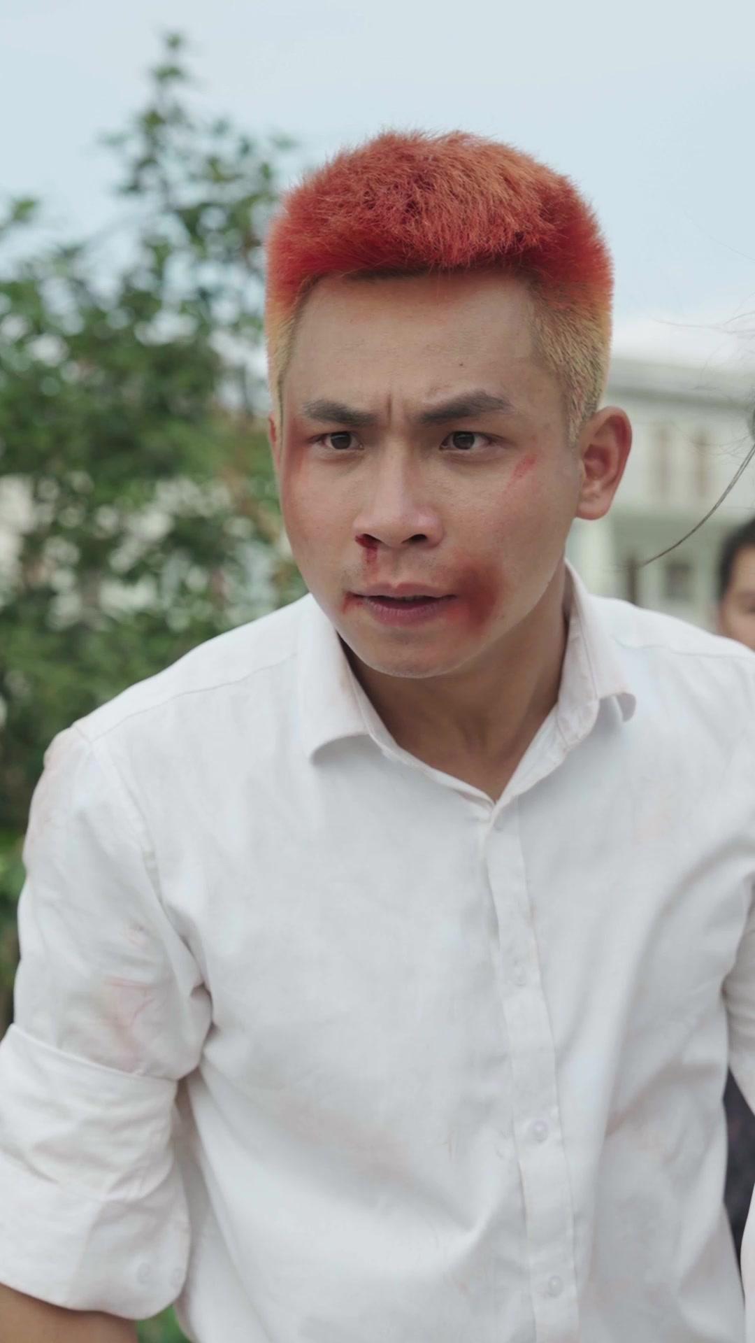 The tension isn’t just emotional—it’s spatial. The group is arranged in concentric circles: at the center, Lin Xiaoyu on her knees; around her, the hooded mourners forming a sacred perimeter; beyond them, the red-clad couple—Uncle Li and Aunt Mei—who wear matching ribbons labeled ‘Parents’ Command’, their faces contorted not with joy but with dread. They clutch each other’s arms like hostages sharing a rope. And then there’s Zhang Wei, the man with dyed orange hair and a split lip, standing slightly apart, his white shirt smeared with blood that isn’t his own. He doesn’t look at Lin Xiaoyu—he looks *through* her, scanning the crowd for allies, for exits, for the moment when the script flips. His posture is rigid, but his fingers twitch near his pockets, as if he’s rehearsing a line he never intended to speak. When the two younger men in patterned shirts finally lunge forward, batons raised, Zhang Wei doesn’t flinch—he *leans in*, almost inviting the blow, as if he’s been waiting for this violence to validate his guilt or absolve his shame. Much Ado About Love isn’t about romance; it’s about the theater of obligation, where love is a debt, marriage is collateral, and grief is the only currency accepted.