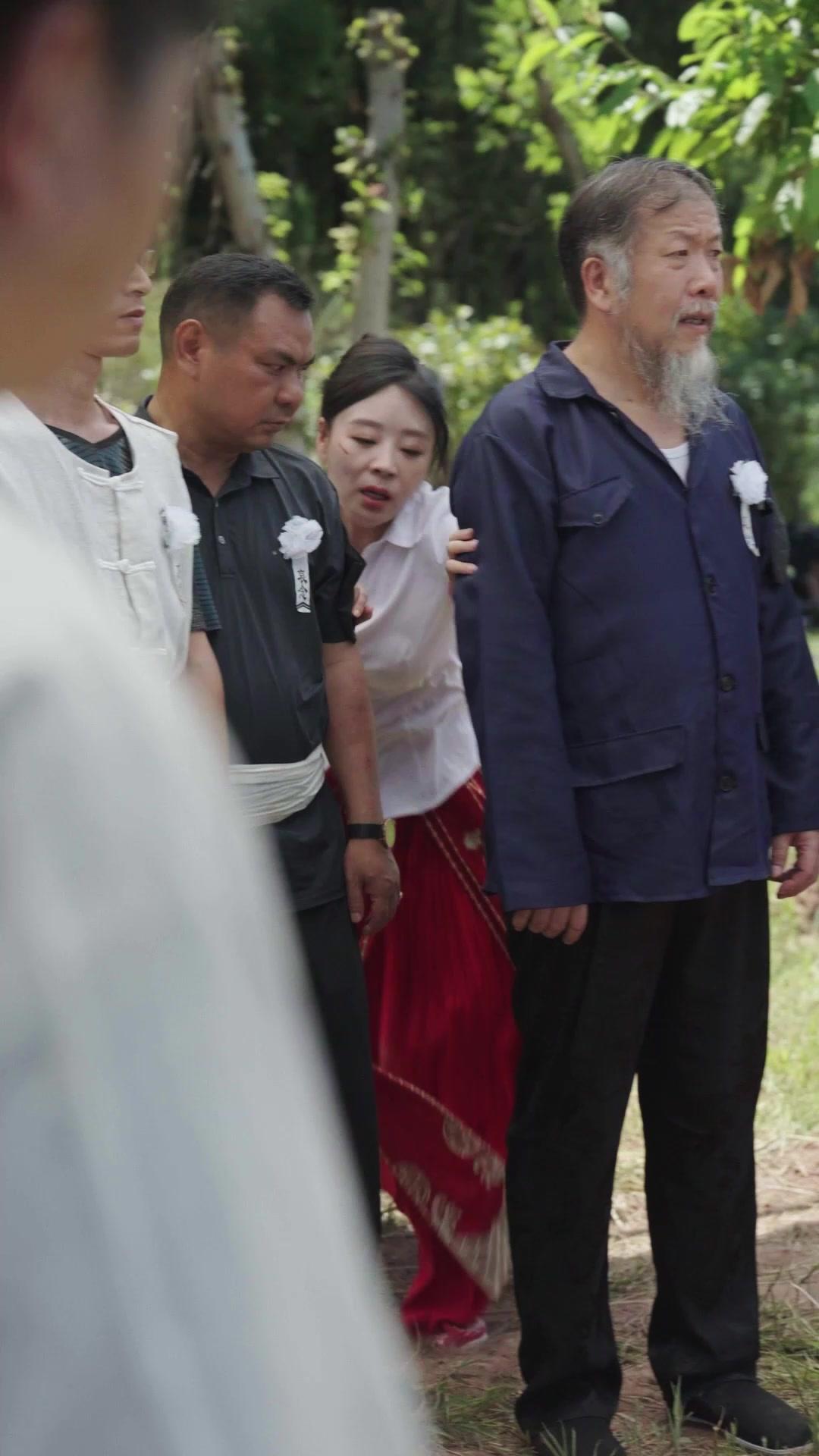 The tension escalates when another mourner, Uncle Zhang, steps forward—not to comfort, but to point. His finger trembles, not with age, but with suppressed rage. He doesn’t shout. He *accuses* with silence, his gaze locked on Liu Xiaoyu as she crouches, half-buried in the earth, clutching a crumpled piece of joss paper. Around them, the crowd parts like water, revealing the stark contrast between ritual and rupture. Traditional wreaths—white chrysanthemums arranged in circular frames with bold calligraphy—stand sentinel, symbols of collective respect, while Liu Xiaoyu’s personal chaos defies every norm. She isn’t performing grief; she’s *living* it, unedited, unfiltered. At one point, she looks up—not at the sky, not at the mourners—but directly into the lens, her eyes red-rimmed, pupils dilated, as if she sees us watching, and dares us to look away. That moment breaks the fourth wall not with gimmickry, but with desperation. It’s here that *Much Ado About Love* reveals its true ambition: to dissect the anatomy of shame, guilt, and forbidden love in a community where reputation is currency and silence is law.