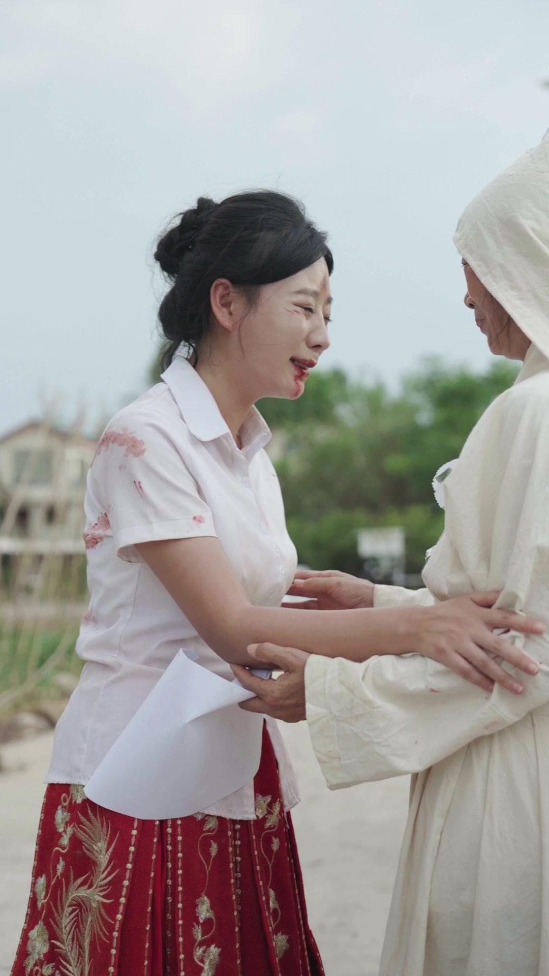 *Much Ado About Love* opens not with music, but with the sound of ragged breathing—Li Na’s, gasping between sobs as she collapses into Grandma Lin’s arms. The blood on her shirt isn’t stage makeup; it’s too uneven, too *real*, pooling in the creases of her collar, splattered across her forearm like a map of chaos. Her hair, half-pinned, escapes in dark strands that cling to her sweat-damp temples. She’s not just injured; she’s *exhausted*, as if the act of staying upright has drained her last reserve of will. Grandma Lin, older, smaller, her face etched with decades of hardship, holds her with a strength that defies her years. Her own robe is stained too—not just with Li Na’s blood, but with older, darker smudges, as if she’s been wearing this grief for months. The hood she wears isn’t ceremonial; it’s armor. It shields her eyes, but not her mouth, which moves in silent prayer or curse—we can’t tell which. Their embrace lasts longer than comfort allows. It’s a transaction: Li Na gives her brokenness; Grandma Lin absorbs it, transmuting it into resolve. In that moment, *Much Ado About Love* establishes its central thesis: mourning isn’t passive. It’s active, strategic, sometimes even aggressive. Cut to the roadside brawl. The orange-haired man—let’s call him Da Feng, based on the graffiti-scrawled nickname visible on his belt buckle—isn’t just being beaten; he’s being *erased*. Men kick at his ribs, not to injure, but to humiliate. One yanks his hair, forcing his head back, exposing his throat like a sacrificial animal. The woman in red—the ‘Mother of the Groom’—doesn’t intervene. She *directs*. Her hands slice the air, her mouth forming words we can’t hear but feel in our bones: *Harder. Again. Make sure he remembers.* Her dress, once festive, now looks like a banner of war. The ribbon pinned to her chest reads ‘Mother of the Groom’, but in this context, it feels ironic, almost mocking. Was Zhou Jian supposed to marry her daughter? Did Da Feng interfere? The film never confirms, but the visual language screams betrayal. The villagers aren’t random bystanders; they’re participants, their faces lit with the grim satisfaction of justice served—or vengeance claimed. One man, wearing a leopard-print shirt, grins as he lands a blow. His joy is unsettling. It reminds us that in small communities, grief doesn’t isolate—it *mobilizes*. It turns neighbors into enforcers, rituals into weapons. Then, the shift. The silence after violence is louder than the shouting. A wooden bowl, rough-hewn, swings gently from a rope held by Xiao Mei. Her hands are clean now, but her nails are bitten to the quick. She wears the same white mourning robe as Grandma Lin, but hers is pristine, untouched by blood—yet. The hood frames her face like a halo, the red mark on her forehead pulsing faintly in the sunlight. She walks toward the grave with the precision of a priestess, each step measured, deliberate. Behind her, Uncle Wei stands rigid, his posture military-straight, though his eyes flicker toward Xiao Mei with something like fear. He knows what’s coming. Young Chen, barely out of adolescence, watches her with awe and dread. He’s the only one who looks *young* in this sea of aged sorrow. When Xiao Mei reaches the grave, she doesn’t speak. She kneels. Not gracefully—her knees hit the dirt with a thud that echoes in the sudden quiet. Then she bows, fully, her forehead touching the earth, her body folding inward until she disappears beneath the folds of her robe. The camera lingers on her back, the white fabric straining over her spine, the black armband stark against the purity of the cloth. This isn’t submission. It’s *declaration*. In many rural Chinese traditions, kowtowing at a grave isn’t just respect—it’s acceptance of responsibility. Xiao Mei isn’t just mourning Zhou Jian. She’s claiming his fate as her own. The grave marker confirms it: Zhou Jian’s photo, serene, smiling, juxtaposed with the crude black plaque bearing his name and the date of death—*August 2024*. Fresh. Too fresh. Incense sticks burn low, their smoke curling like unanswered questions. A bowl of fruit sits nearby, untouched. The apples are perfect, glossy, absurdly vibrant against the dull earth. Symbolism? Perhaps. Or perhaps the filmmaker is simply reminding us that life persists, indifferent, even as humans tear themselves apart. *Much Ado About Love* excels in these contradictions: the sacred and the profane, the quiet and the violent, the bloodied and the immaculate. When Xiao Mei rises, her face is composed, but her eyes—oh, her eyes—are pools of contained storm. She looks at Grandma Lin, and for a fraction of a second, the old woman’s mask slips. We see it: not pride, not relief, but *fear*. Fear of what Xiao Mei will do next. Because the real climax isn’t the beating. It’s the silence after. It’s Xiao Mei handing the wooden bowl to Young Chen, her voice barely a whisper: ‘Pour it.’ He hesitates. The bowl contains water—or is it wine? The liquid catches the light, amber and deep. He lifts it, arms trembling, and pours it onto the grave. Not in mourning. In *sealing*. The earth drinks it greedily. And then, the most chilling moment: Xiao Mei turns to the camera—not literally, but compositionally—and smiles. Not a happy smile. A thin, sharp thing, like a blade drawn slowly from its sheath. Her lips part, and she says, ‘He’s at peace now.’ But her eyes say: *And I’m just getting started.* *Much Ado About Love* doesn’t end with closure. It ends with implication. The villagers disperse, muttering, already reconstructing the story in their heads. Li Na walks away, still clutching that paper, her steps unsteady but determined. Grandma Lin lingers, her hand resting on Zhou Jian’s photo, her thumb rubbing the glass as if trying to wake him. The wind picks up, scattering white paper coins across the grave. One land