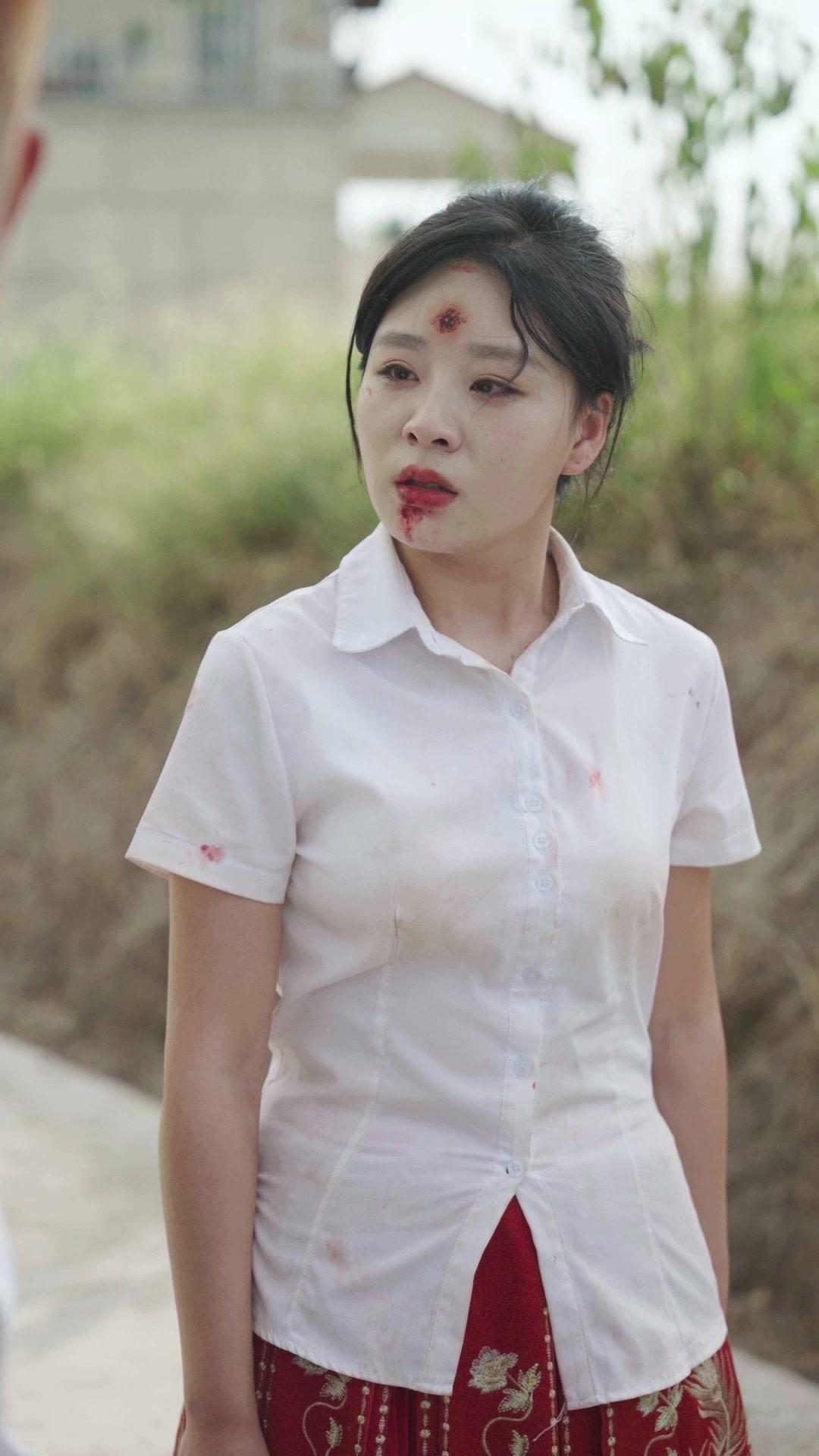 There is a particular kind of dread that settles in your chest when you realize the celebration has already ended—before the cake was cut, before the first toast was raised, before anyone had the chance to smile without hesitation. That dread permeates every frame of Much Ado About Love, a short film that masquerades as a rural wedding vignette but functions as a masterclass in emotional detonation. The opening shot—a close-up of Lin Xiao, her white shirt speckled with rust-colored stains, her forehead bearing a fresh wound, her lower lip split and crusted—does not invite sympathy. It demands witness. She is not crying yet. Not openly. Her eyes are dry, wide, fixed on something just beyond the lens, as if she’s replaying the last ten seconds in her mind, searching for the exact moment everything tilted. Her red skirt, rich with gold-threaded peonies, sways slightly in the breeze, a cruel echo of festivity. This is not a victim pose; it’s a stance of stunned recalibration. She is still processing the physics of betrayal—how force translates into flesh, how words become weapons, how love can curdle in the span of a single exhale.