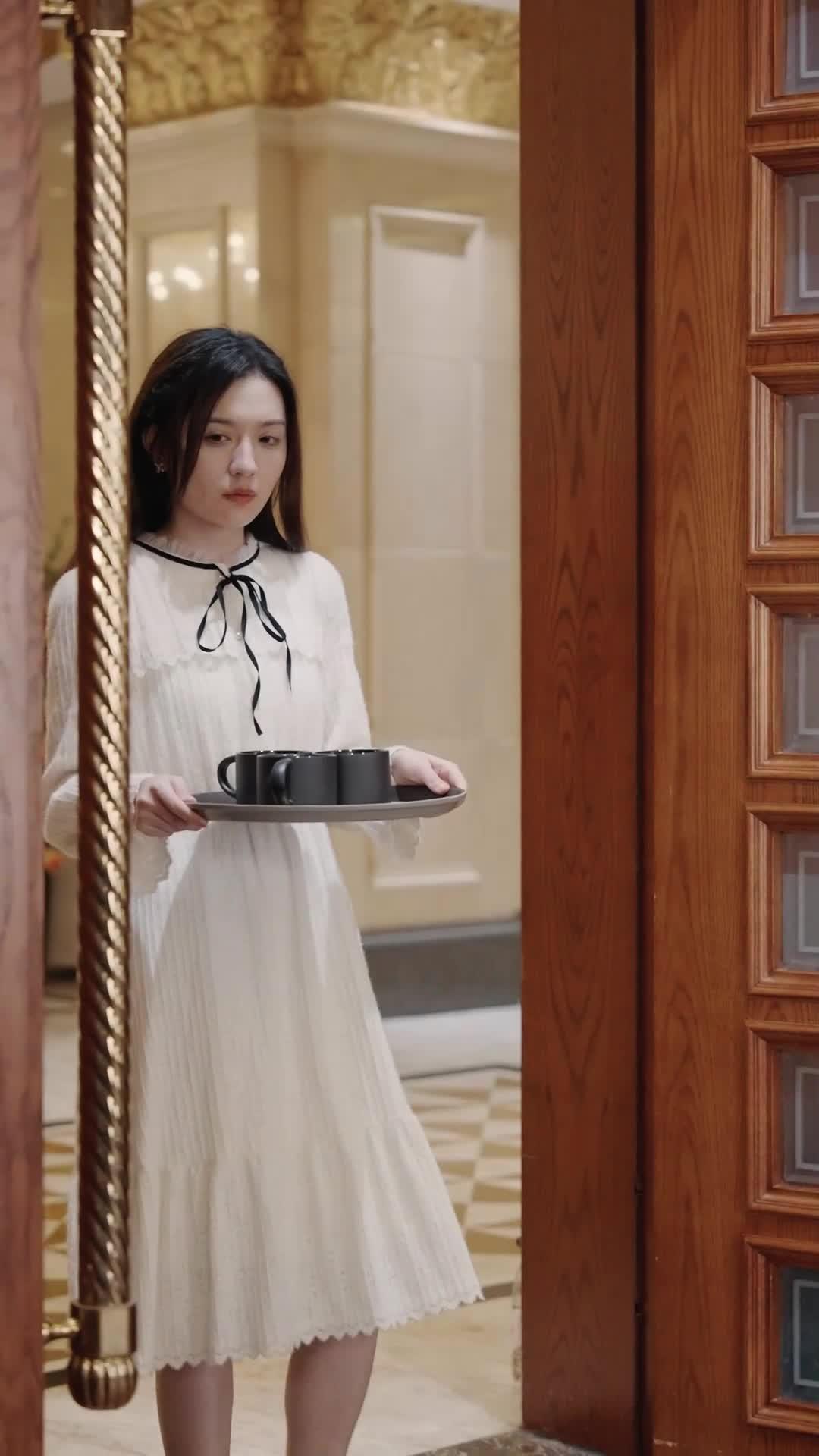 Let’s talk about the flower. Not the one in the mug—that’s just set dressing, albeit exquisite set dressing—but the one pinned to Madam Chen’s lapel. Silver, intricate, cold to the touch, probably worth more than a month’s salary for anyone outside this mansion. It’s not jewelry. It’s a weapon. A signature. A brand. And in the world of My Liar Daughter, branding is everything. Identity is fluid, loyalty is negotiable, and truth? Truth is the first thing sacrificed at the altar of survival. Lin Xiao walks into that room like she’s stepping onto a stage she didn’t audition for, her cream dress a stark contrast to the black uniforms of the women already seated. She’s not dressed for mourning. She’s dressed for interrogation. The black ribbon at her neck isn’t decorative—it’s a leash she’s learned to wear with dignity. Every movement she makes is calibrated: the tilt of her head, the angle of her shoulders, the way her fingers brush the edge of the tray as if reassuring herself it’s still there, still real.
