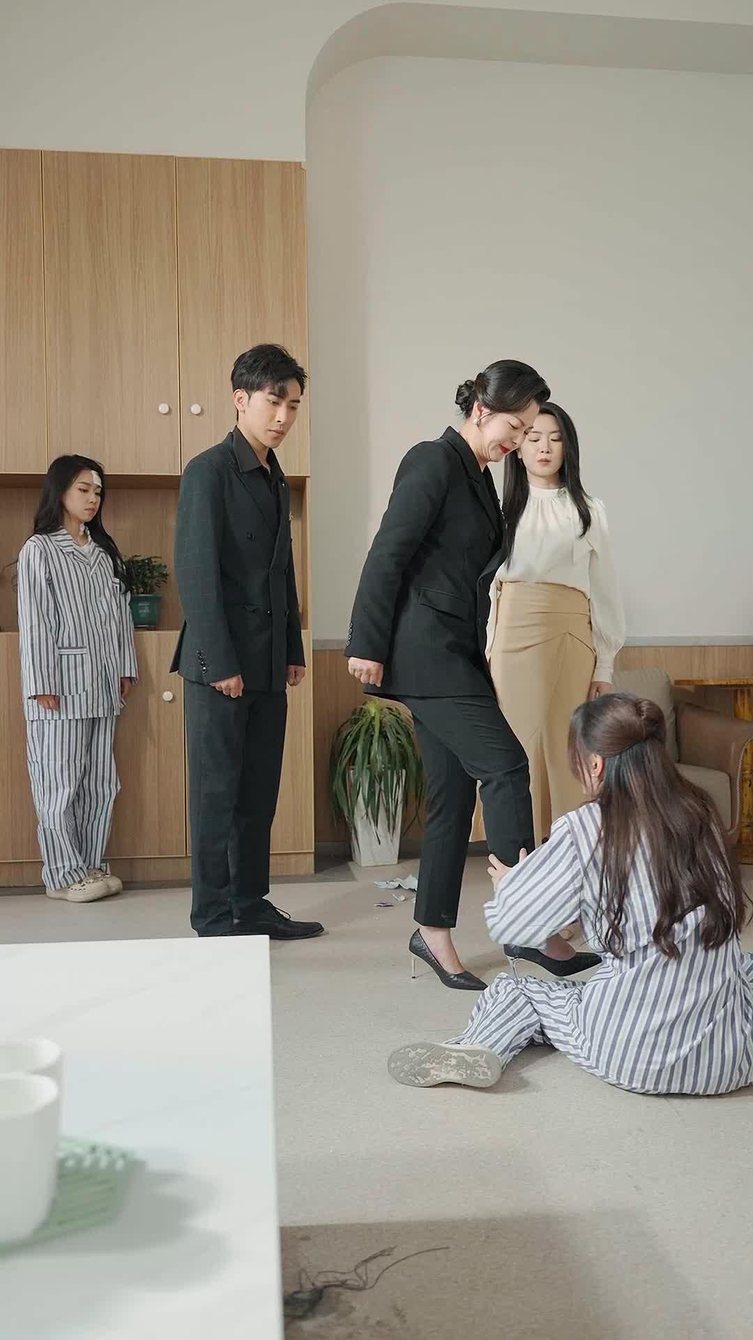 The turning point arrives not with a scream, but with a sigh. Li Na, still in her striped pajamas, rises from the floor—not with the wobble of a victim, but with the controlled grace of a dancer stepping onto stage. Her hair, previously loose and disheveled, is now gathered into a low ponytail, practical, intentional. She walks toward Chen Xiao, and for the first time, she doesn’t look down. Their faces are inches apart, and the air between them crackles. Chen Xiao doesn’t blink. Li Na doesn’t flinch. And then, softly, Li Na says something we don’t hear—because the camera cuts to Madame Lin’s face, frozen mid-breath, her lipstick slightly smudged at the corner of her mouth, her hand tightening on the phone in her palm. Whatever Li Na said, it wasn’t denial. It was revelation. A truth so sharp it cut through the layers of pretense like a scalpel. The aftermath is chilling in its restraint: Zhou Wei takes a step back, as if physically repelled. Chen Xiao exhales, long and slow, and for the first time, her composure cracks—not into tears, but into something far more unsettling: understanding. She nods, just once, and turns away. She’s done. The game is over. Not because someone lost, but because someone finally stopped playing by the rules.