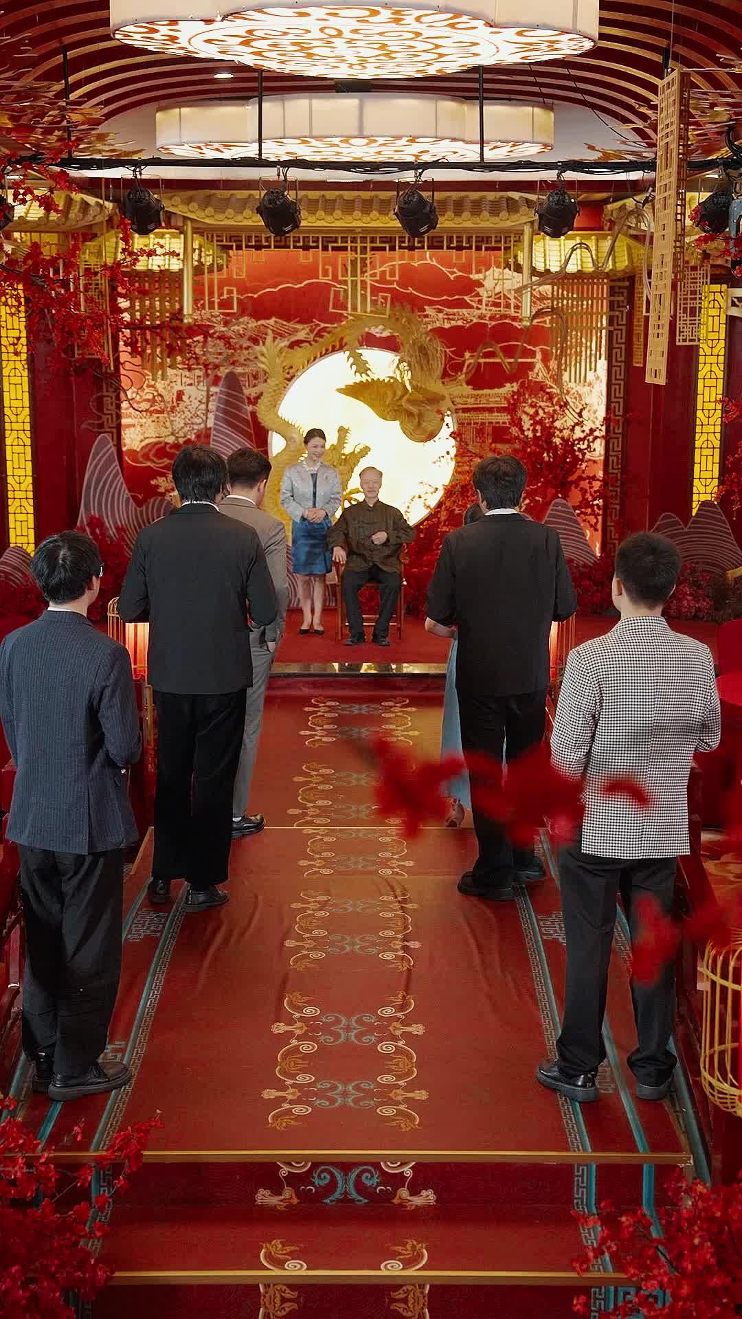 The setting, rich with classical motifs—the dragon representing power and destiny, the circular moon symbolizing unity and completion—became ironic counterpoint to the fractured relationships playing out beneath it. This wasn’t a celebration of harmony; it was a ritual of exposure. Every guest lining the aisle, dressed in formal attire ranging from pinstripes to traditional cheongsams, watched not with idle curiosity, but with the rapt attention of witnesses at a trial. Their presence wasn’t decorative; it was judicial. They were there to see whether the past would be honored, rewritten, or buried.