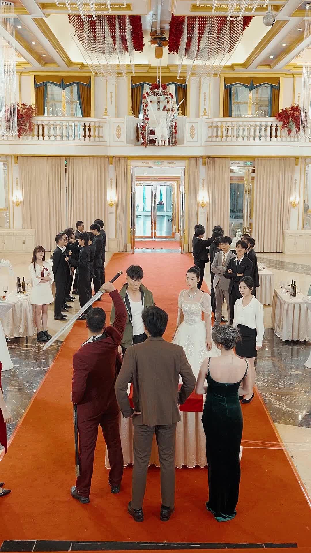 The cinematography reinforces this duality. Wide shots emphasize the grandeur of the space—the balconies, the symmetry, the sheer scale of the event—while close-ups isolate micro-expressions: the flicker of doubt in Zhang Lin’s eyes, the tremor in Wu Mei’s clasped hands, the way Yuan Ling’s earrings sway as she tilts her head, assessing. The lighting is warm, golden, deceptive—like honey poured over rust. Nothing here is as sweet as it appears. Even the red flowers lining the aisle look less like celebration and more like warning flags.