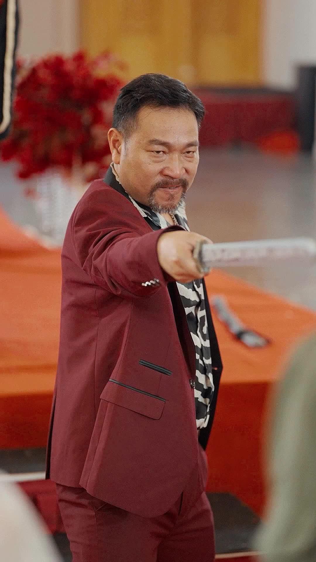 Let’s talk about that moment—when the groom, Jian, stood frozen in his olive-green bomber jacket, white tank top clinging to his sweat-damp chest, sword raised like a lightning rod in the middle of a grand ballroom draped in crimson and gold. The air didn’t just thicken; it *cracked*. You could hear the silence ripple outward from him like shockwaves through water, each guest holding their breath as if exhaling might shatter the illusion they’d all been living in for months. This wasn’t just a wedding interruption—it was a reckoning, a violent unspooling of carefully woven lies, and My Long-Lost Fiance didn’t arrive with fanfare. It arrived with steel, fire, and a man who refused to let the past stay buried.