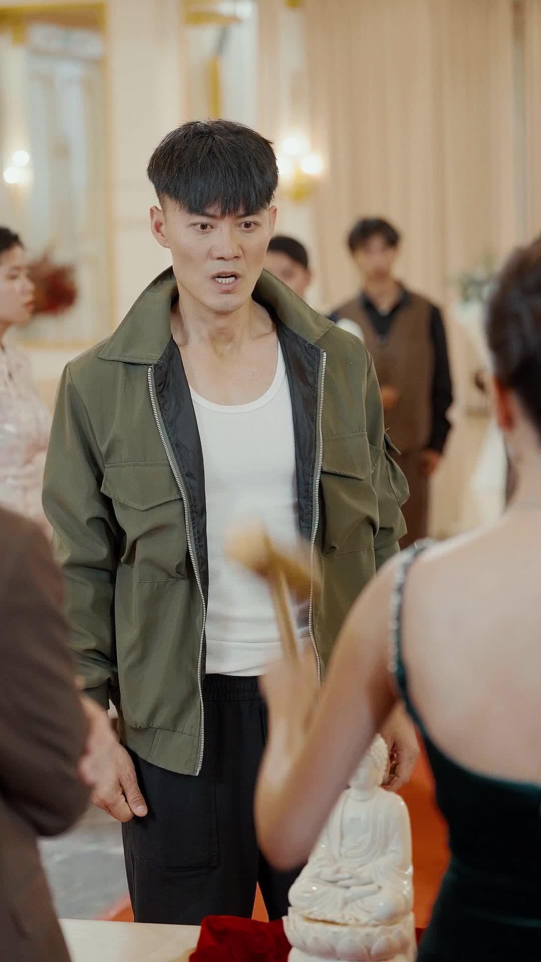 Let’s talk about Li Wei first. He’s not the typical hero of a romantic drama. He doesn’t stride in with a bouquet or a speech. He arrives in a slightly rumpled olive jacket, black joggers, and a white undershirt that screams ‘I forgot this was formal.’ His presence is an intrusion, yes—but more importantly, it’s an accusation. His eyes scan the room, not with curiosity, but with the weary familiarity of someone returning to a house he once called home, only to find the furniture rearranged and the locks changed. He doesn’t raise his voice. He doesn’t need to. His stillness is louder than any outburst. When Lin Xiao lifts the gavel, his pupils contract. Not fear—anticipation. He’s been waiting for this moment for thirteen years. And when the statue breaks, he doesn’t flinch. He watches the pieces fall like leaves in autumn, each shard a fragment of a story he thought was buried forever.
