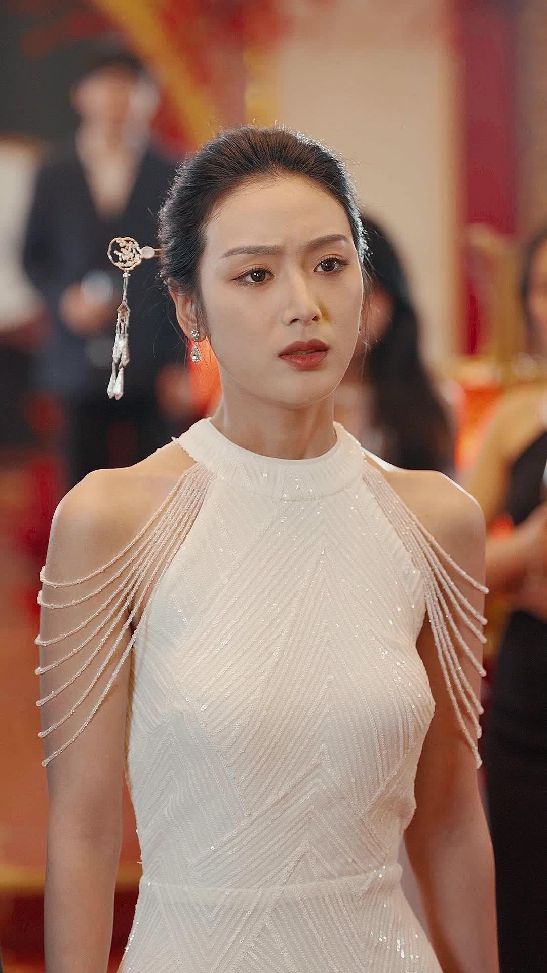 Let’s talk about the most dangerous weapon in *My Long-Lost Fiance*: not the ornate hairpin Lin Xiao wears, not the prayer beads clutched by the elder patriarch, but the way Chen Wei *looks* at her. Not with longing. Not with anger. With the quiet devastation of a man who has rehearsed this moment a thousand times—and still got it wrong. The setting is opulent, yes: red velvet carpets, gilded archways, floral arrangements that smell like nostalgia and regret. But none of that matters when two people stand three feet apart and the air between them crackles like static before lightning. Lin Xiao, in her high-necked white gown adorned with delicate strands of crystal that mimic falling rain, doesn’t smile. Her lips are parted slightly, as if she’s about to speak—but the words have dissolved somewhere between her throat and her tongue. She’s not frozen. She’s *calculating*. Every micro-expression is a data point: the tilt of her chin (defiance), the flicker in her left eye (doubt), the way her fingers twitch at her side (suppressed impulse to reach out). This isn’t passivity. It’s strategic stillness. She’s waiting to see what version of Chen Wei walks through that archway—not the boy she loved, not the ghost she mourned, but the man who chose to disappear.