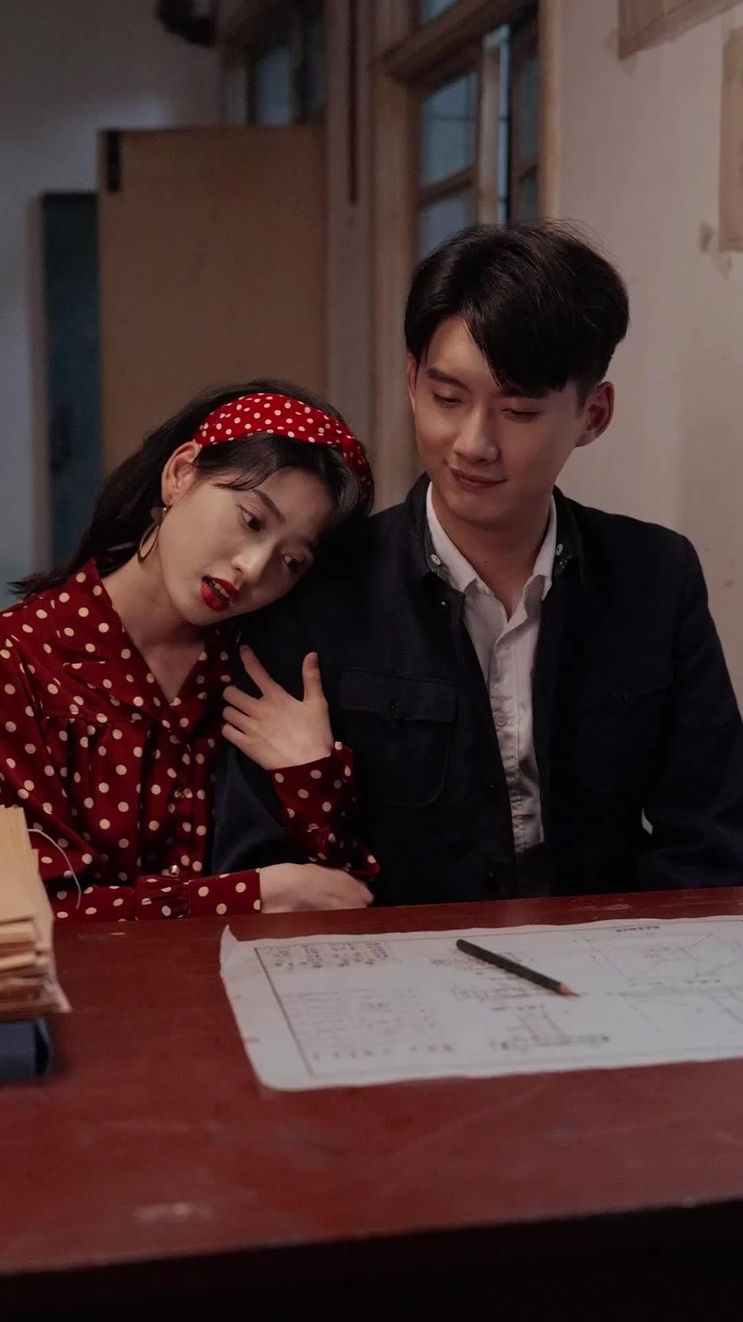 The setting is deliberately worn—peeling paint, a wooden desk scarred by decades, blueprints spread like maps to a future no one’s sure they’ll reach. Lin Wei, in his dark jacket and crisp white shirt, plays the role of the earnest engineer, the man who believes in lines and angles, in cause and effect. But watch how he holds her hand—not just holding, but *anchoring*. His fingers tighten when she speaks, his eyes narrow slightly, as if trying to decode her tone like a cipher. He thinks he’s listening. He’s not. He’s waiting for permission to believe her. And that’s where the tension lives: between what she says and what she *withholds*.