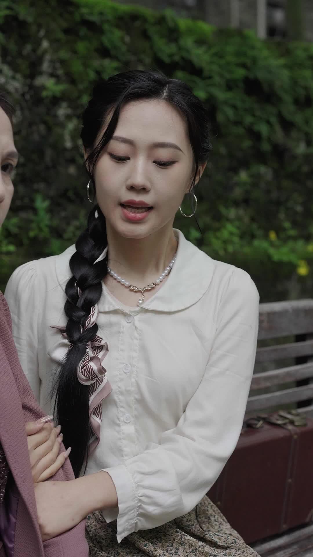 There’s a bench. Not ornate. Not historic. Just wood, weathered by decades of rain and silence, bolted to concrete near a moss-draped stone wall. In *My Time Traveler Wife*, that bench isn’t furniture—it’s a threshold. And on it sit two women: Lin Mei, whose posture carries the weight of unsaid goodbyes, and Xiao Yu, whose youth hasn’t yet learned how to hold grief without flinching. Between them, a suitcase—dark brown, leather-bound, with brass corners dulled by time. Behind them, a sign: ‘Deep Line 16 – Shenzhen Station – Departure 22:30’. The numbers glow faintly, like embers refusing to die. This isn’t just a bus stop. It’s a liminal space, where past and present share a cigarette and pretend they don’t recognize each other.