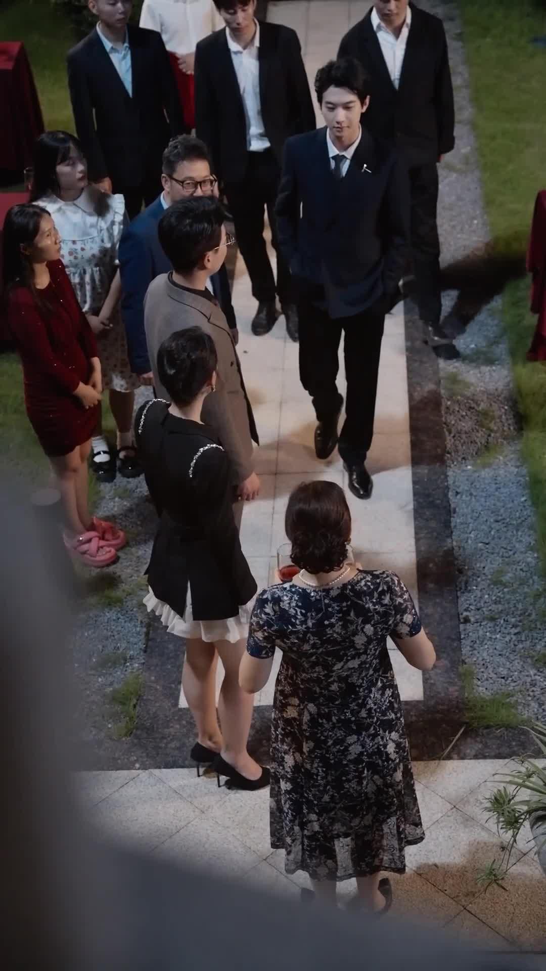 The setting itself functions as a character. The garden is manicured to perfection—symmetrical hedges, stone pathways, potted plants arranged like sentinels—but the lighting is uneven, casting long shadows that swallow parts of the scene whole. The string lights above create halos around heads, turning faces into icons, mythic figures caught in a tableau of fate. There’s no background music, only ambient sound: the faint murmur of distant conversation, the clink of glass on glass, the rustle of fabric as someone shifts position. That sonic minimalism forces the audience to lean in, to read lips, to interpret micro-expressions. When Madame Lin finally raises her glass—not to toast, but to drink—and drains it in one smooth motion, the camera holds on her face. Her lips glisten with wine, her throat moves as she swallows, and for a split second, her composure slips. Just a tremor in her hand. A blink too long. Then she smiles again, serene, regal, unreadable. That’s the genius of Phoenix In The Cage: it doesn’t tell you how characters feel. It makes you *feel* it alongside them, in your own chest, in the pit of your stomach. Li Wei may think he’s in control, but the real power lies with those who know when to stay silent, when to hold the bangle, when to let the wine flow. And as the scene fades, with Xiao Mei stepping forward—just one half-step, barely noticeable—we understand: the cage is still there. But someone has found the lock. And tonight, the phoenix may finally learn to fly—or burn trying.