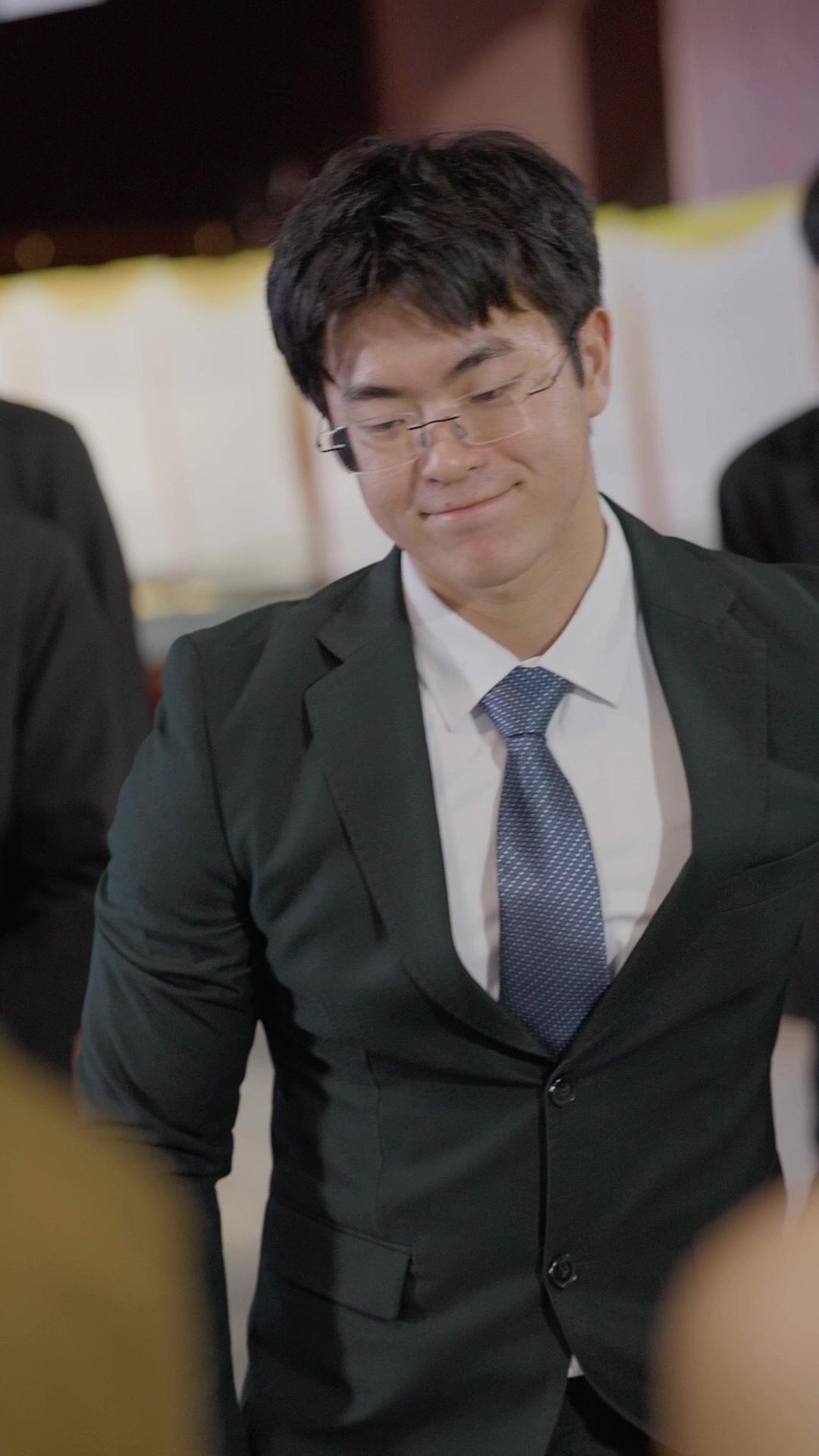 Then comes the contrast: the man in the pinstripe navy double-breasted suit—Zhou Jian, if we’re to guess from later dialogue cues—steps into frame beside a woman in a pale blue halter dress. Her hair falls in soft waves, her earrings catch the light like tiny stars, and yet her expression is unreadable. Not cold, not warm—just *waiting*. Zhou Jian wears his authority like a second skin. His tie is patterned with intricate paisley, his watch gleams under the ambient lighting, and his posture is relaxed, but his jaw is tight. He’s listening. Always listening. When he turns his head slightly, as if catching a sound no one else hears, you realize this isn’t just a social gathering—it’s a chessboard. Every gesture, every pause, every shift in gaze is a move. The woman beside him—Yao Lin, perhaps?—doesn’t speak much, but when she does, her voice is low, measured. She doesn’t need volume to command attention. In one shot, she crosses her arms, red nails contrasting against the soft fabric of her dress, and her lips part just enough to let out a single syllable: *‘Really?’* It’s not a question. It’s a challenge wrapped in silk.