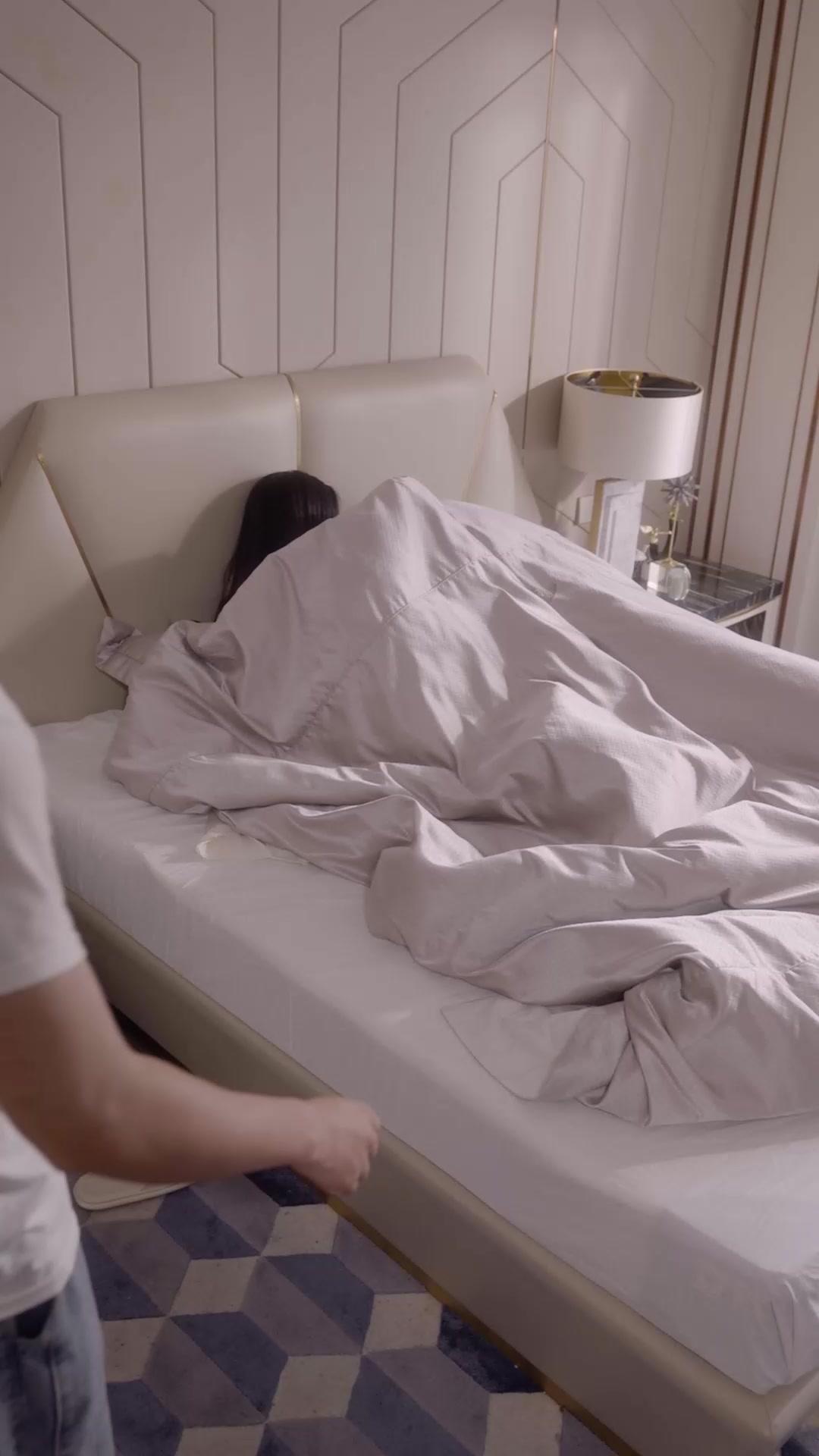 In the world of Pretty Little Liar, beds are never just furniture. They’re confessionals, crime scenes, and sometimes, silent witnesses to the slow unraveling of a relationship. The latest sequence opens with Lin Xiao buried under a duvet like a creature retreating into its shell—her eyes wide, alert, scanning the room not for danger, but for *intent*. Chen Wei enters not with purpose, but with hesitation, his body language broadcasting uncertainty before his mouth even forms a word. He’s wearing jeans that sag slightly at the waist, a detail that speaks volumes: this isn’t a man prepared for war. He’s still in sleep-mode, mentally halfway between dream logic and reality—and that dissonance is where the tension festers. The camera lingers on his hands: one clenched at his side, the other reaching out instinctively toward the bedpost, as if grounding himself in the physical world while his mind races through possibilities. Lin Xiao sees it all. She always does. That’s the thing about Pretty Little Liar—no one is ever truly caught off guard. They’re just waiting for the other to make the first move in a game neither wants to play.