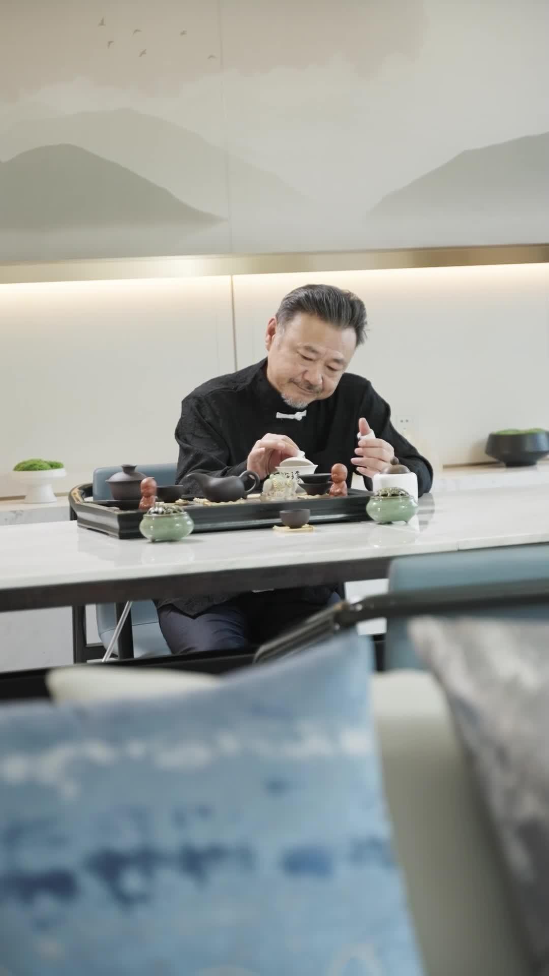 Her red leather jacket screams rebellion; his black tunic whispers tradition. Clash of Light and Shadow isn’t about tea—it’s about who controls the silence between sips. That final eye-roll? Pure cinematic gold. 😏✨