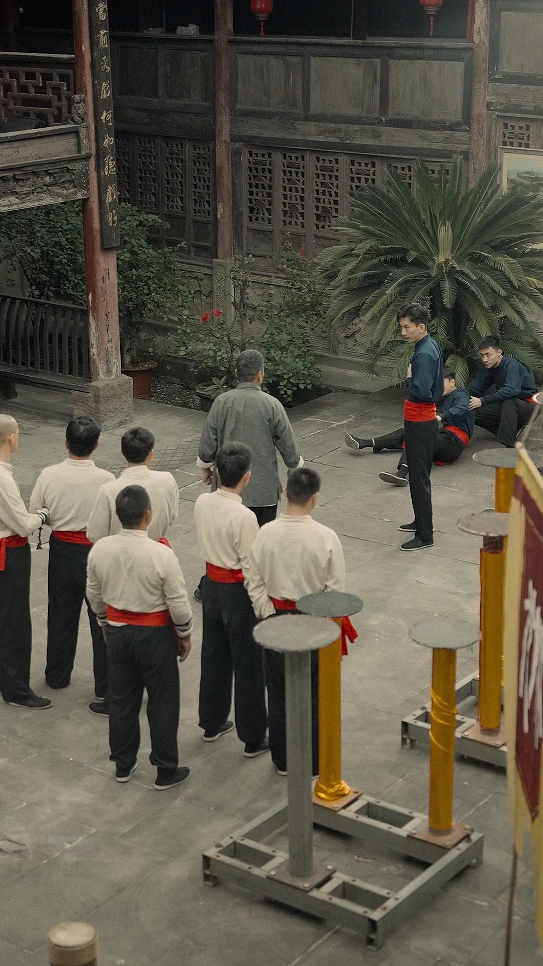 Li Wei staggers back, clutching his side, his face twisted not just in pain but in something deeper: betrayal. His comrades in blue lie scattered around him, some propped up on elbows, others curled inward like wounded animals. One of them, Zhang Tao, tries to rise, only to collapse again, his fingers brushing a smear of crimson on the flagstones. Behind them, a lion dance head rests abandoned on a stool—its painted eyes wide, its mouth frozen mid-roar. It’s ironic, almost cruel: the symbol of celebration now watches over a scene of collapse. The banner behind them reads ‘Dragon Gate’ in bold calligraphy, but no gate opens here today. Instead, the courtyard feels like a cage, its ornate latticework casting shadows that look like prison bars across the faces of the onlookers.