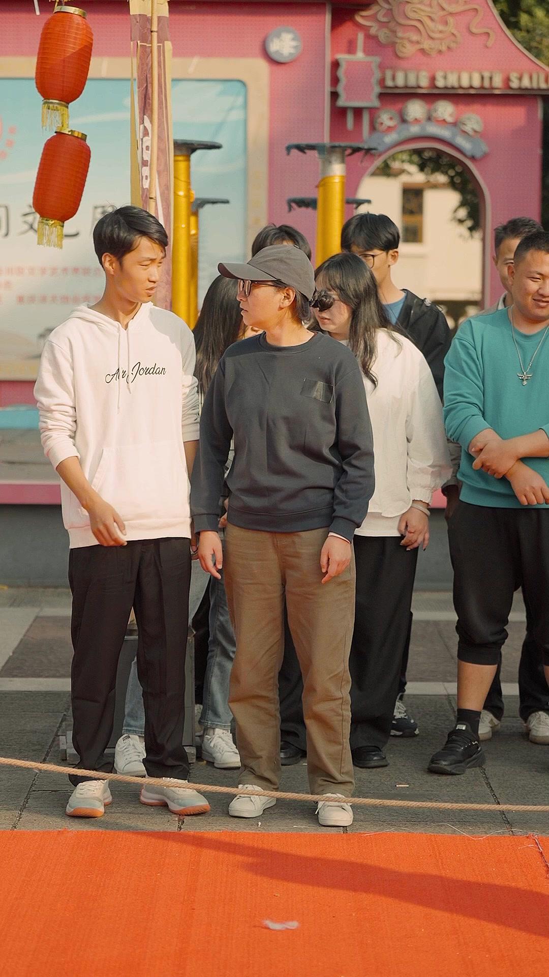 The opening frames of Return of the Lion King: Legacy Reignited don’t just set a scene—they drop us into the middle of a cultural rupture. A red carpet stretches across a sun-drenched courtyard, flanked by traditional lanterns and ornate archways bearing faded calligraphy. But this isn’t a celebration. It’s a trial by silence. Two young men stand at the front—Li Wei in his off-white hoodie emblazoned with ‘Air Jordan’, and Chen Xiao in a muted grey sweatshirt, cap pulled low, glasses perched precariously. Their postures are rigid, not defiant, but *waiting*. The rope stretched before them isn’t for a game; it’s a boundary line drawn in dust and expectation. Behind them, the crowd breathes in unison—some curious, some judgmental, others simply numb. This is not a street performance. This is a reckoning.