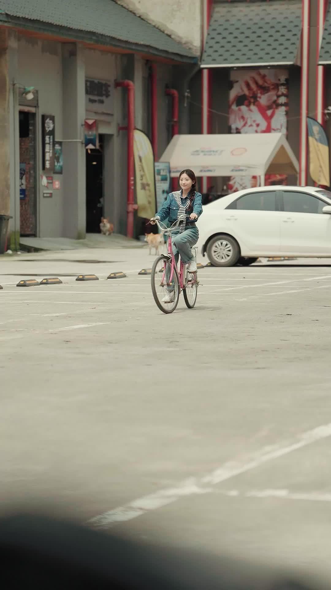 Let’s talk about what happened in that sun-dappled alleyway—not just the action, but the quiet tremors beneath it. At first glance, it’s a simple scene: a young woman, Li Xiaoyue, pedaling a faded pink bicycle across an empty lot, her denim jacket slightly oversized, her striped scarf fluttering like a flag of innocence. She’s smiling—genuinely, softly—as if the world hasn’t yet told her how heavy it can get. But the camera lingers on the white sedan parked nearby, its windows tinted, its presence too deliberate to be incidental. And then there’s Chen Wei, leaning against a van, zebra-print shirt unbuttoned just enough to suggest he’s not here for tea. His eyes track her. Not with hunger, not with malice—yet—but with calculation. He doesn’t move until she passes. That’s when the shift happens. The bike wobbles. A hand grabs her shoulder. Not violently, not yet—just enough to stop her breath. It’s not a kidnapping; it’s a *transition*. From freedom to uncertainty. From daylight to shadow.