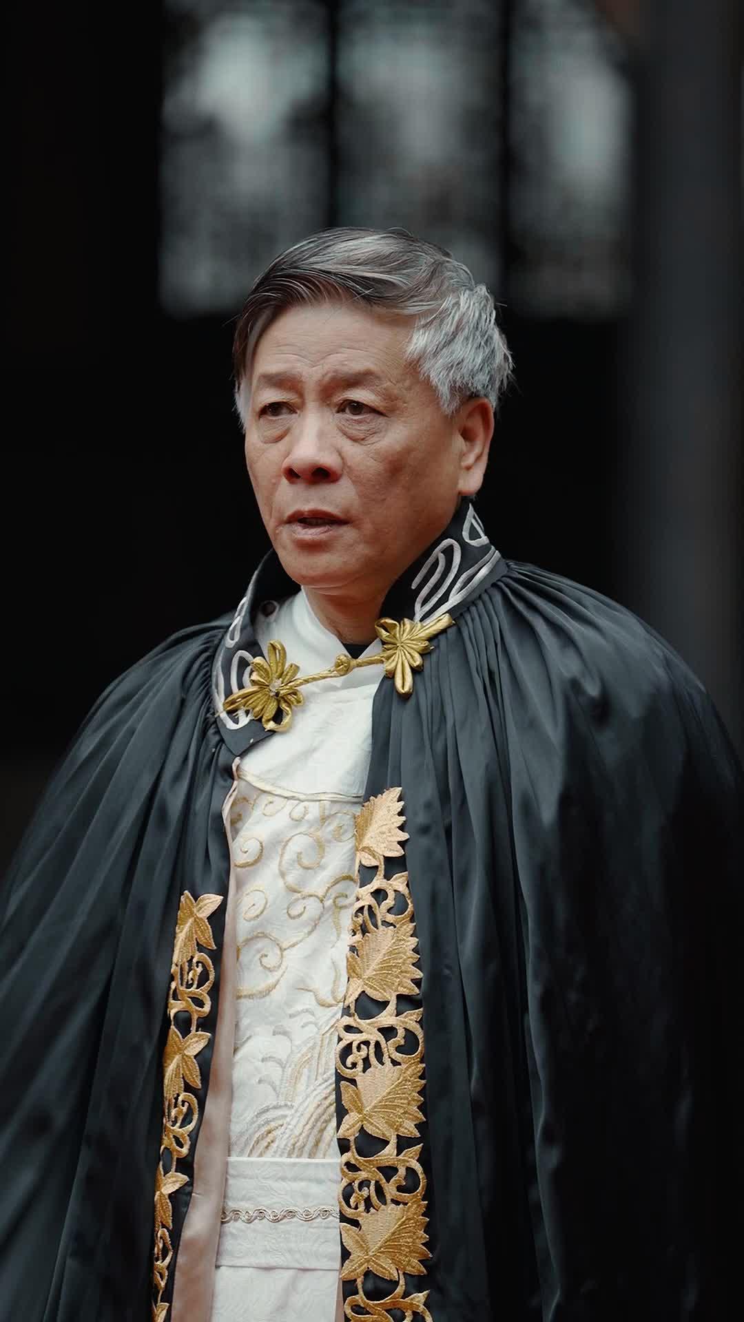 In the courtyard of an ancient, weathered temple—its eaves carved with dragons, its red lanterns swaying like silent witnesses—the tension doesn’t just simmer; it *bleeds*. Rise of the Outcast isn’t merely a period drama—it’s a psychological pressure cooker disguised as a martial arts spectacle. Every frame pulses with unspoken history, every gesture carries the weight of betrayal, loyalty, and the unbearable cost of dignity. At the center stands Lin Jian, the young man in the white embroidered changshan, his lip split, blood tracing a path down his chin like a cruel signature. He doesn’t flinch. Not when the elder in the black cape—Master Feng, whose robes shimmer with gold lotus motifs and whose eyes hold centuries of judgment—casts him a look that could freeze fire. Not when the crowd behind him raises fists in synchronized defiance, their chants barely audible beneath the rustle of silk and the creak of old wood. This is not rebellion born of ideology; it’s raw, animal survival. Lin Jian’s smile, when it finally comes, isn’t triumphant—it’s *terrifying*. It’s the grin of a man who has stared into the abyss of humiliation and decided to wear it like armor.