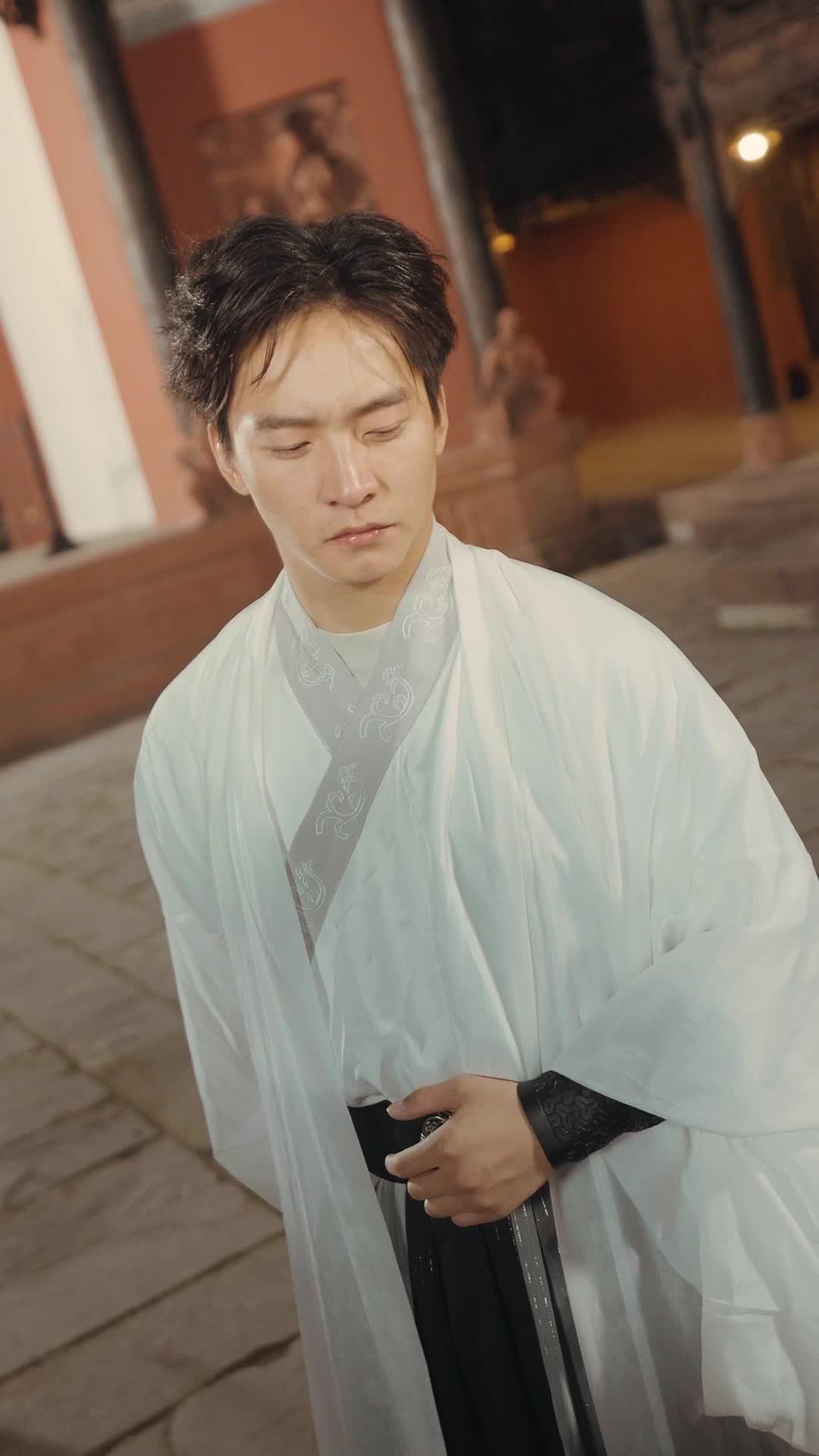 In the flickering glow of red lanterns strung across the ancient wooden courtyard, where every beam bore centuries of carved secrets and whispered legends, *Rise of the Outcast* delivers a sequence that feels less like choreographed combat and more like a ritual—raw, desperate, and steeped in spiritual consequence. The protagonist, Li Wei, draped in a translucent white robe embroidered with silver yin-yang motifs and geometric borders, does not merely fight; he *unravels*. His movements are not those of a trained swordsman but of a man whose body has become a conduit for something older than technique—something that trembles when struck, bleeds when denied, and rises again only because it must. From the very first frame, his expression is not fear, nor rage, but a kind of stunned disbelief—as if he’s just realized the world he trusted was built on sand. He grips the hilt of his sword not with confidence, but with the trembling urgency of someone trying to hold onto a dream slipping through their fingers.
