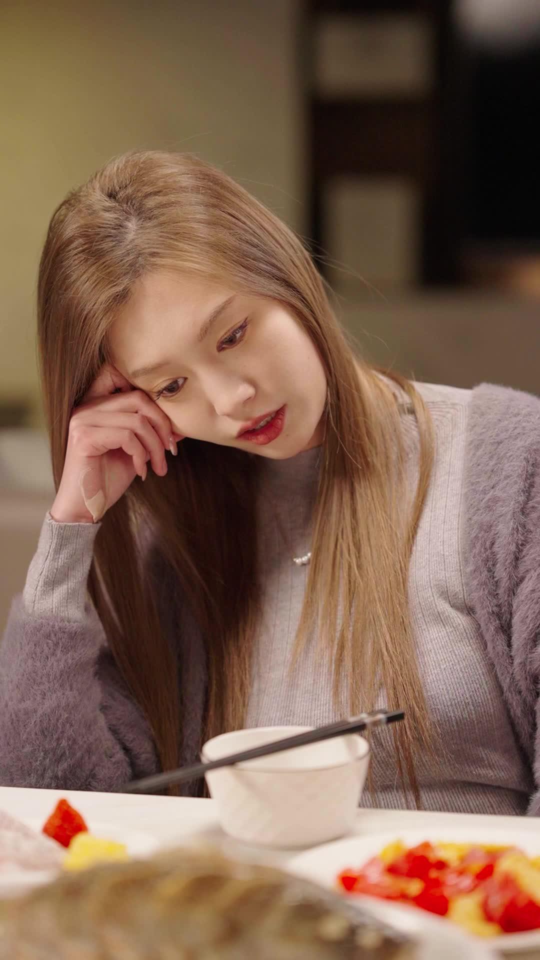 If you’ve ever sat through a tense dinner with someone you love but can’t quite reach, you’ll recognize the exact moment in *Scandals in the Spotlight* when Chen Wei’s chopsticks hover over the fish, then freeze. Not because he’s indecisive—but because he’s listening to the silence between Li Na’s sighs. That’s the genius of this series: it treats quiet like a character. A living, breathing entity that grows heavier with every unspoken thought. The opening scene isn’t just about food; it’s about proximity without connection. Li Na rests her head on her hand, elbow on the table, gaze fixed on the plate of sweet-and-sour tomatoes—vibrant, glossy, utterly ignored. Her necklace, a delicate pearl cluster, catches the light like a tiny beacon of hope she’s too tired to follow. Chen Wei, meanwhile, wears his ‘Adventure III’ sweater like a shield, the bold typography mocking the lack of adventure in their current reality. He tries to engage—reaches for the ribs, gestures toward the fish—but his movements are hesitant, rehearsed. He’s not hungry. He’s desperate. And the camera knows it. Wide shots emphasize the distance between them—even though they’re seated only three feet apart, the marble table feels like a canyon.